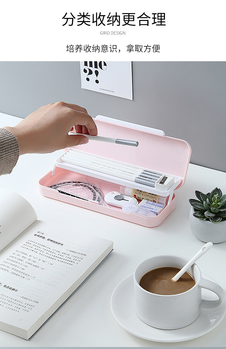 Minimalist matte large capacity stationery box with a double-layer storage container and creative design |