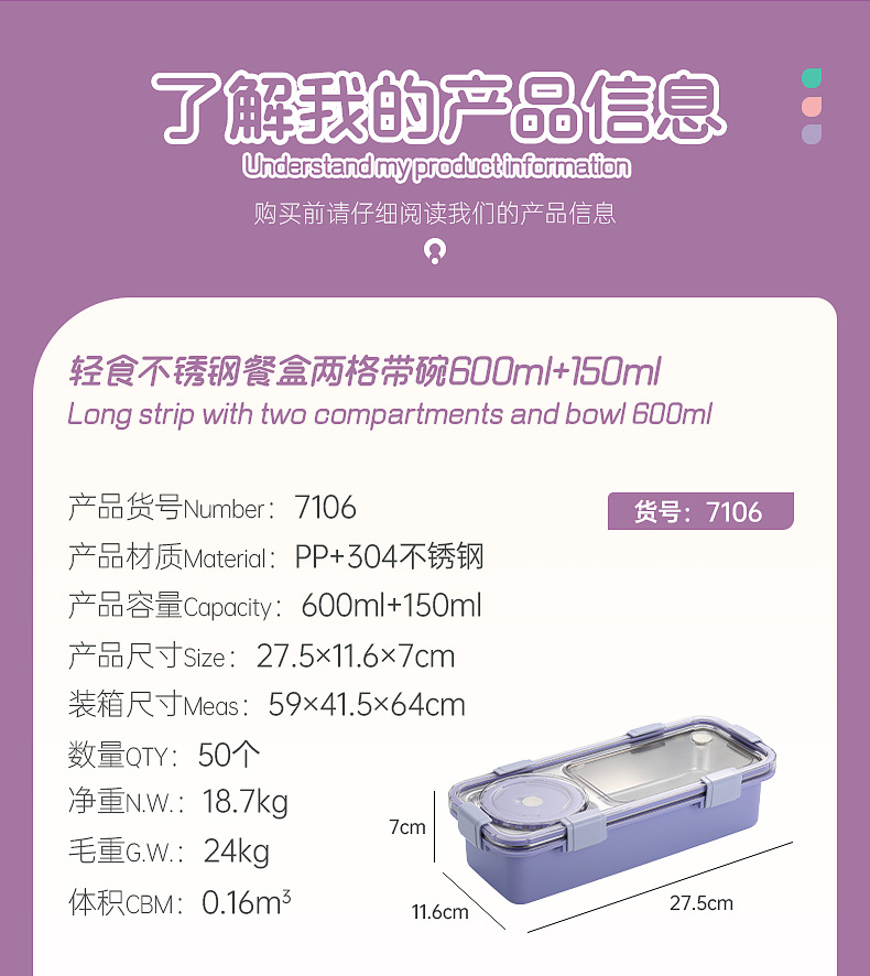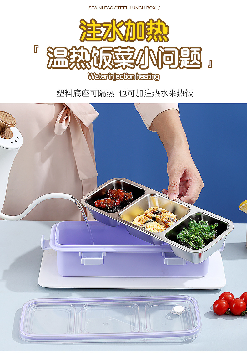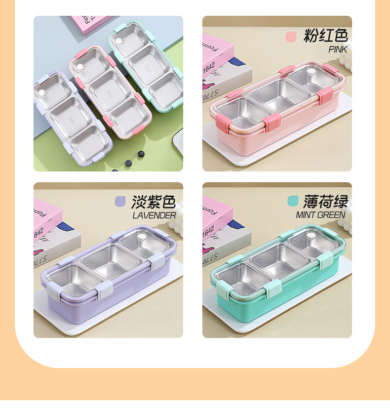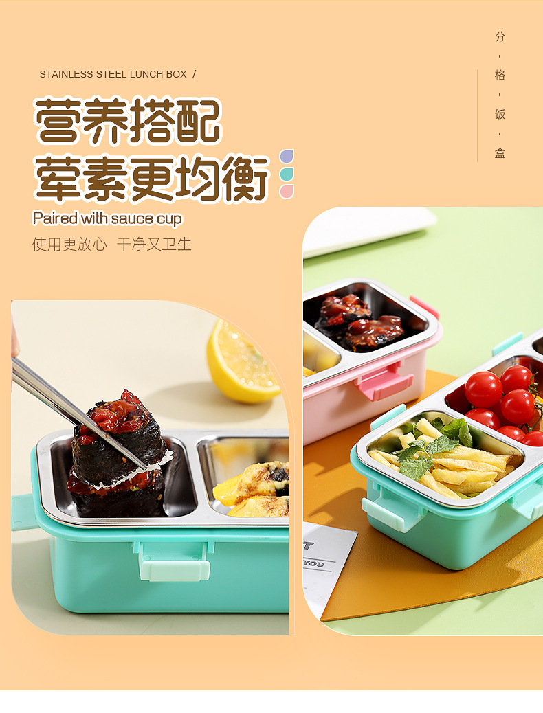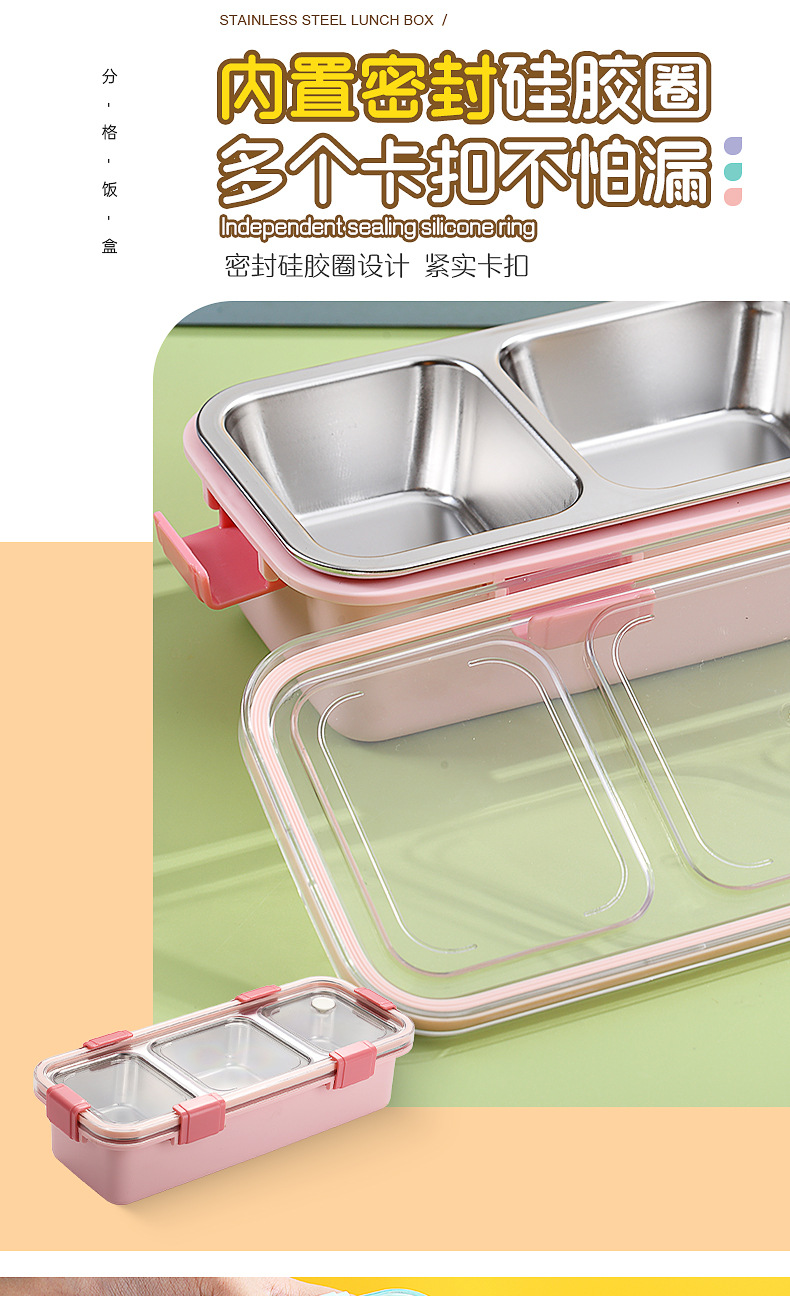 light food stainless steel bento box multi-compartment sealed leak-proof lunch box with bowl with stainless steel soup ladle office lunch box
