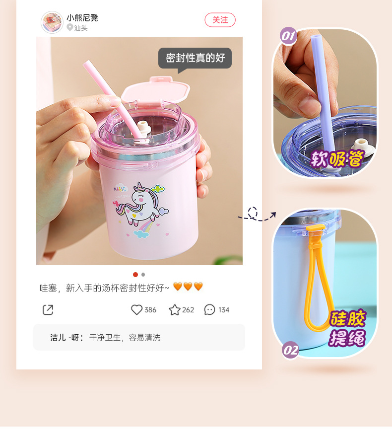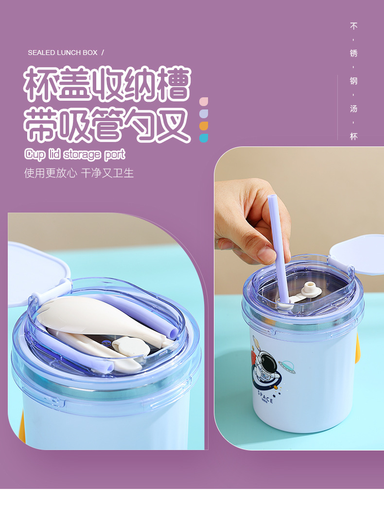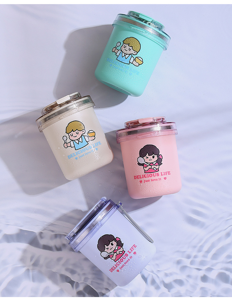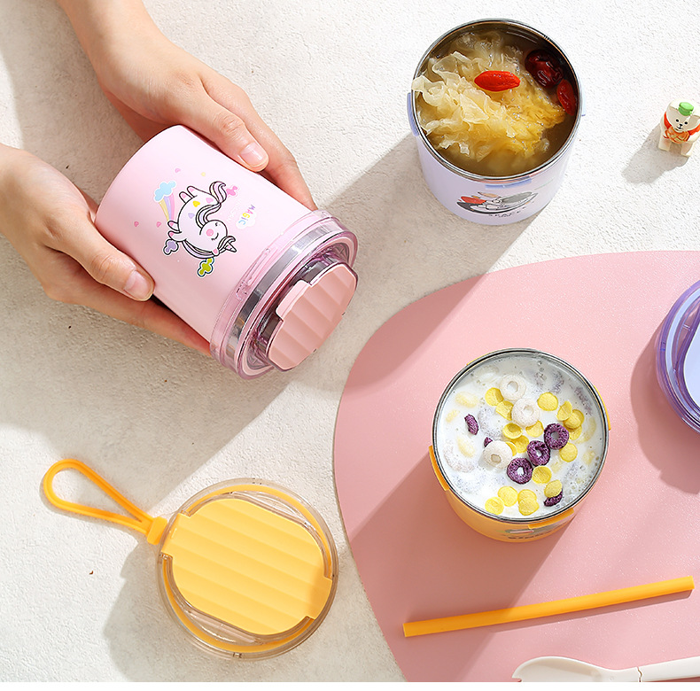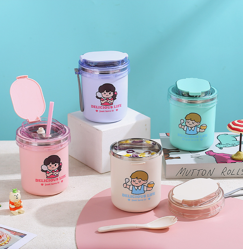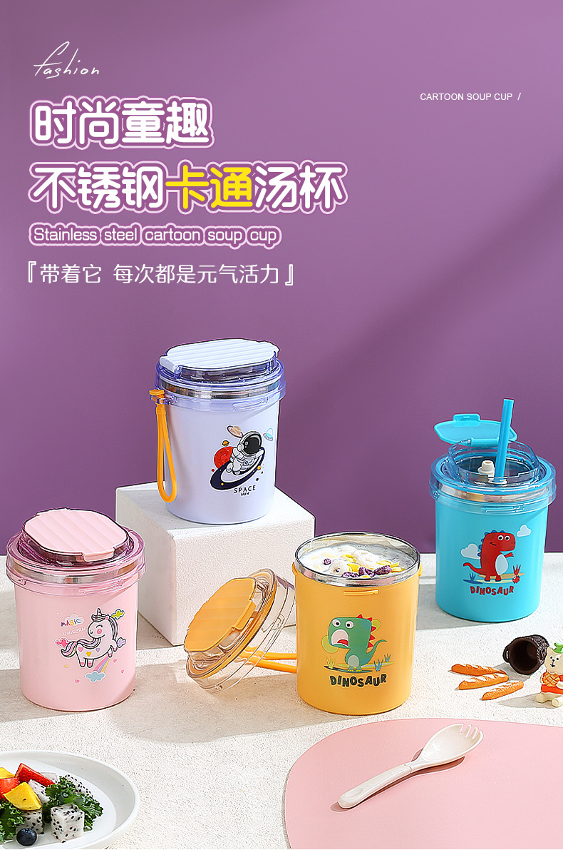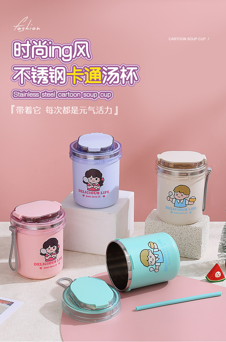 fashion ins stainless steel soup cups office worker student sealed breakfast milk cup portable straw drinking cup 530ml