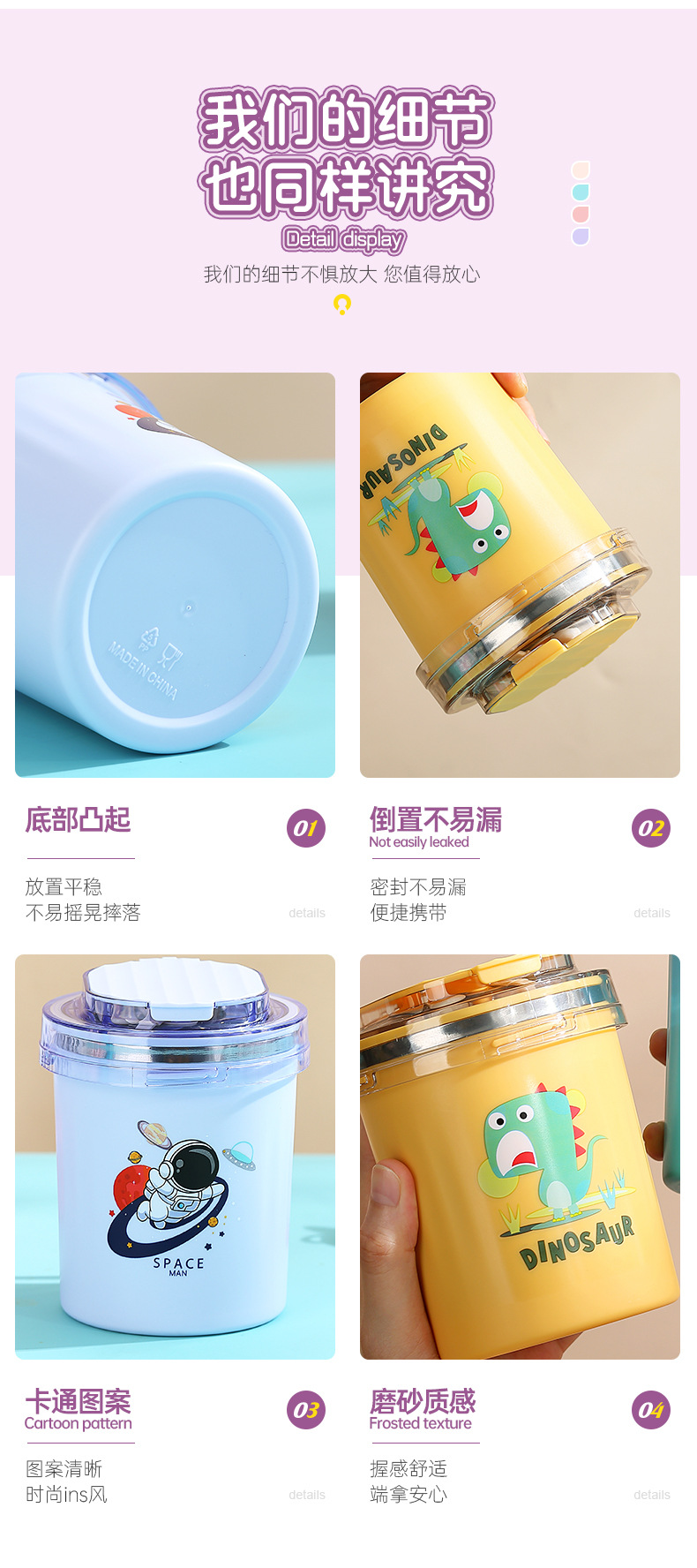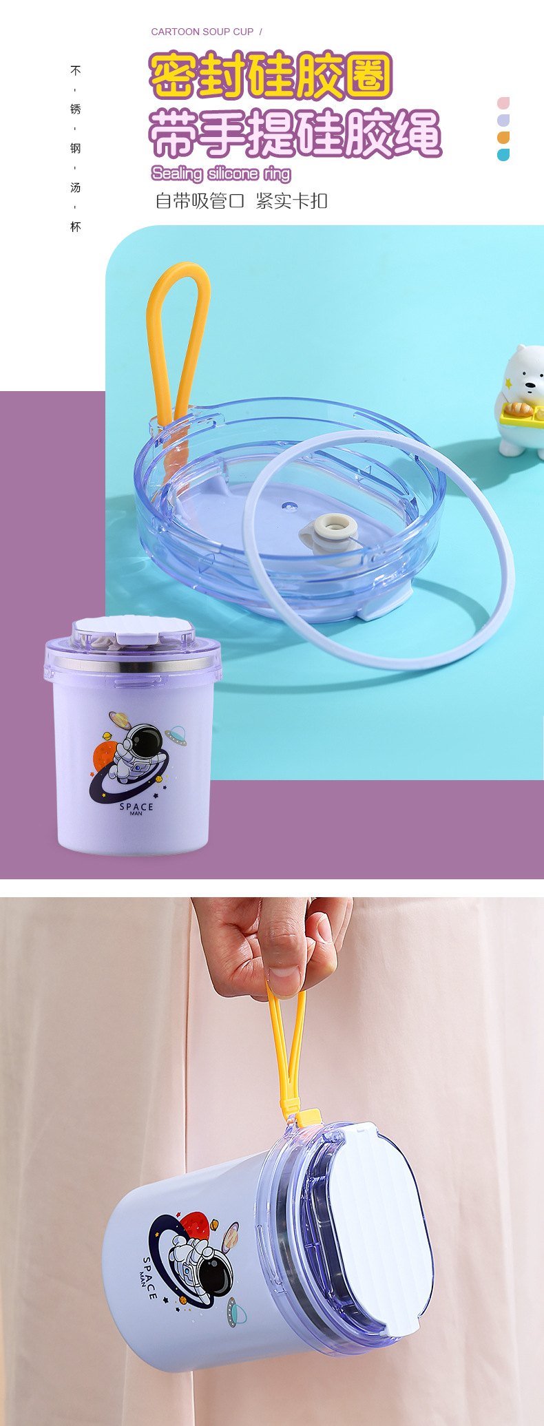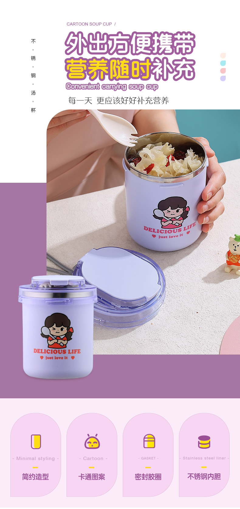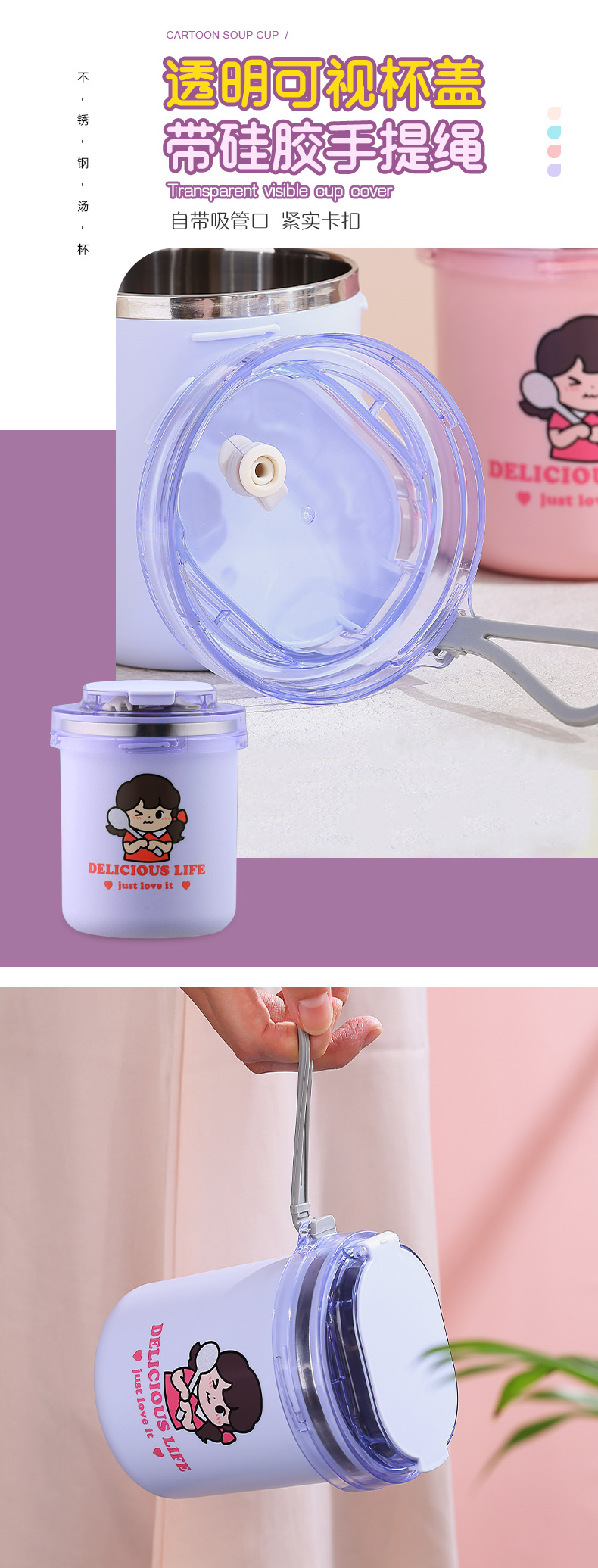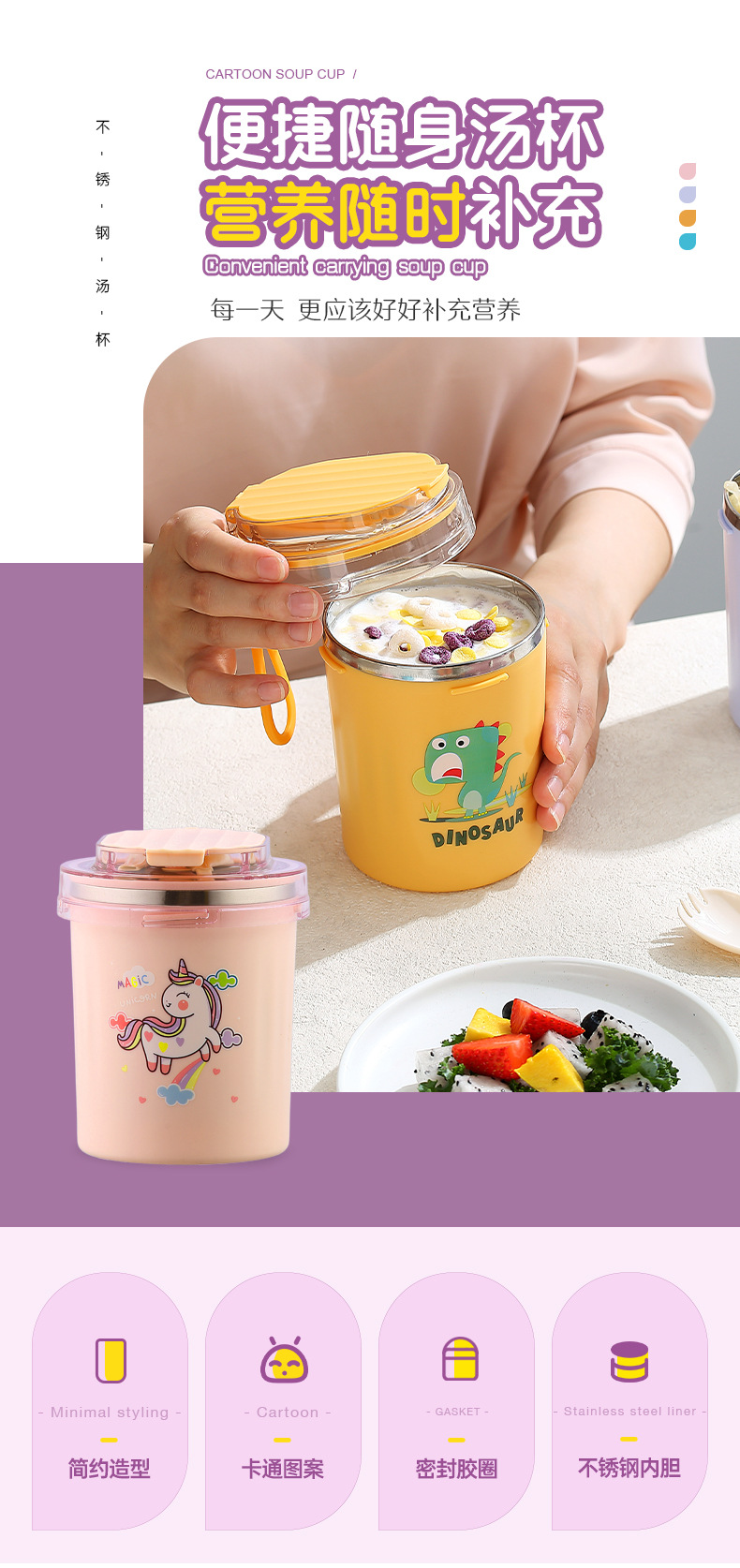 fashion ins stainless steel soup cups office worker student sealed breakfast milk cup portable straw drinking cup 530ml