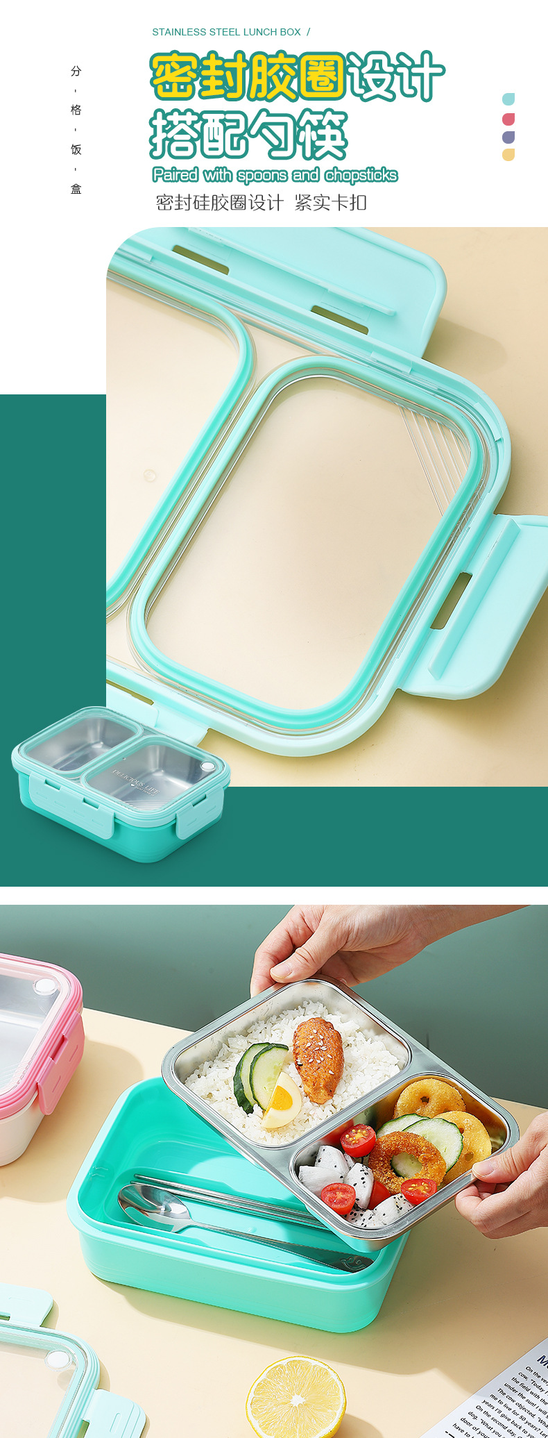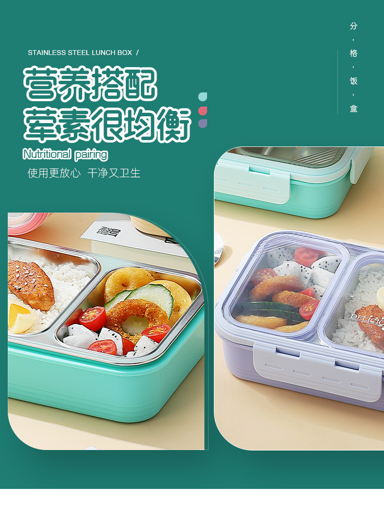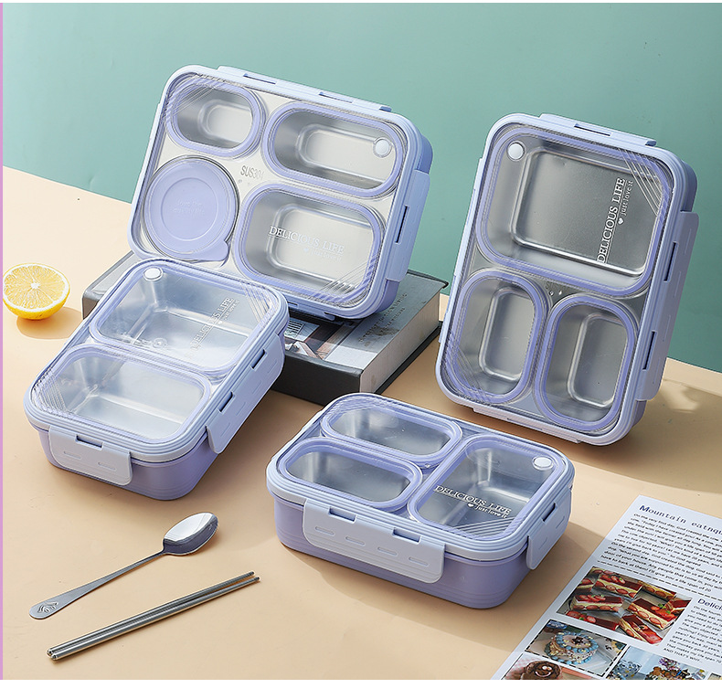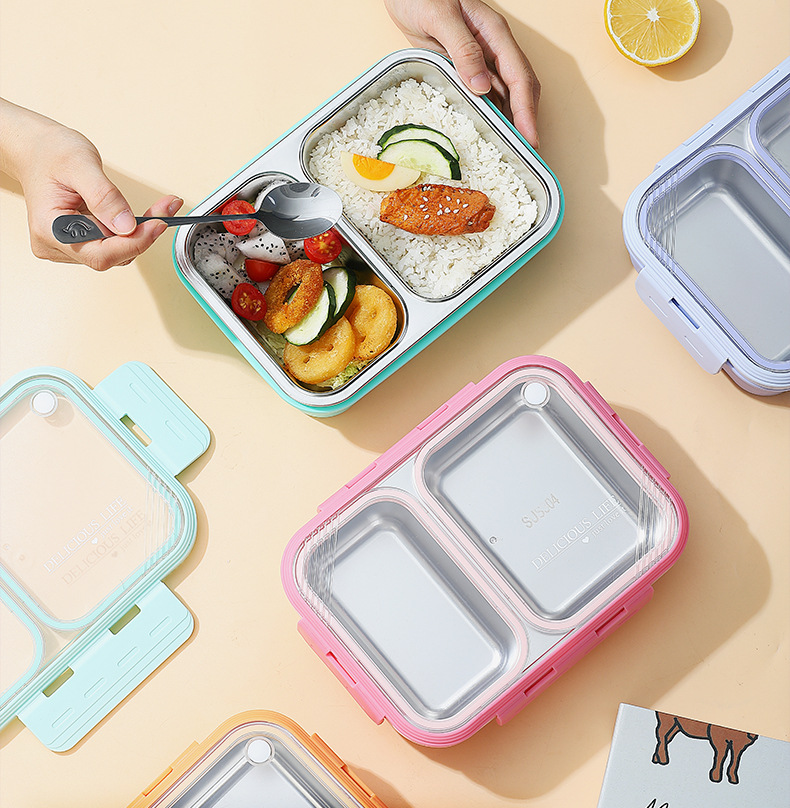 304 stainless steel new non-skewed lunch box deepening insulation office worker good-looking compartment silicone ring lunch box