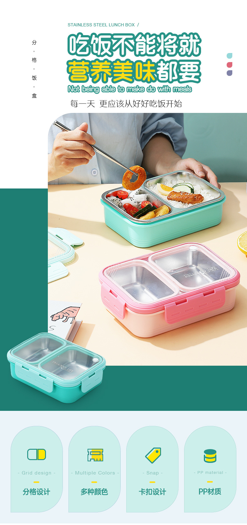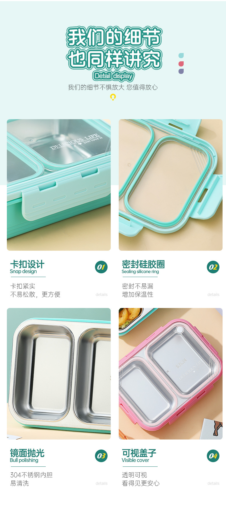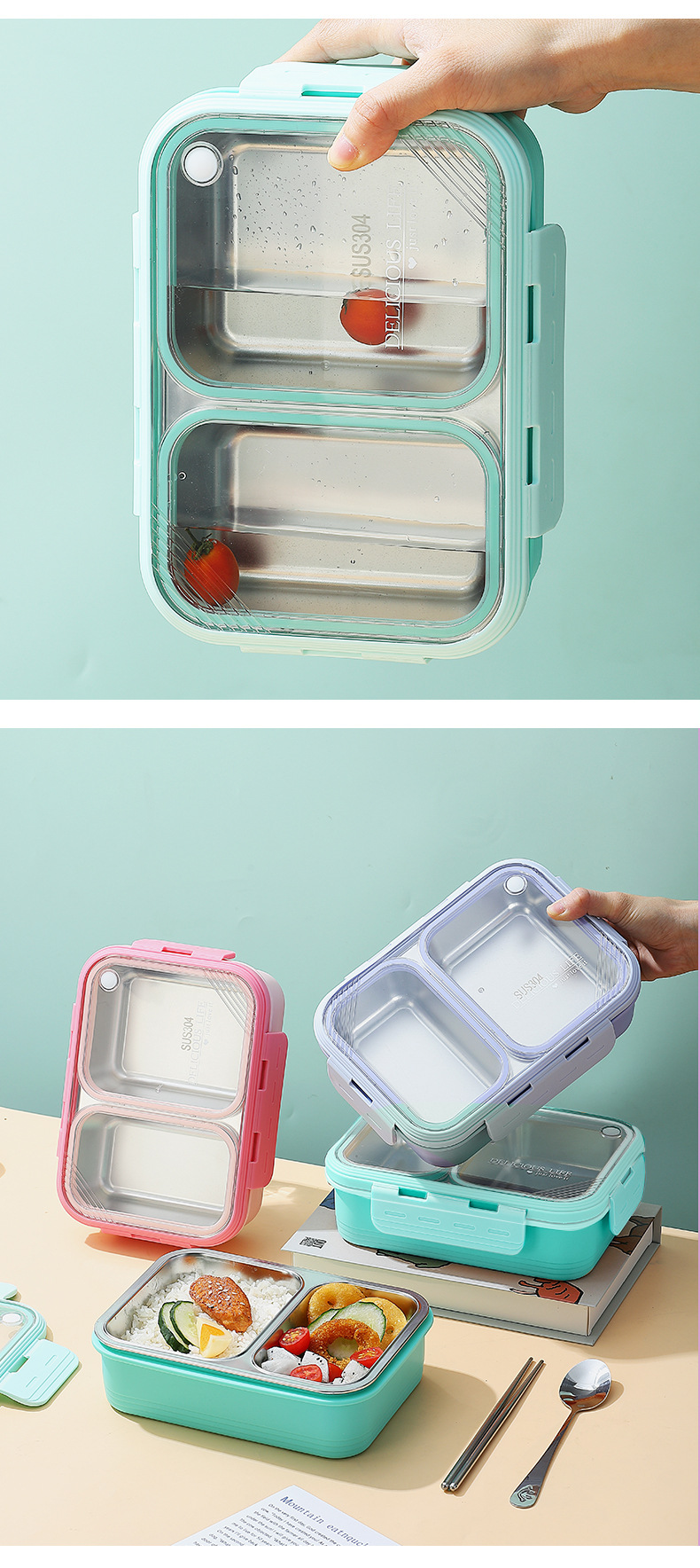 304 stainless steel new non-skewed lunch box deepening insulation office worker good-looking compartment silicone ring lunch box
