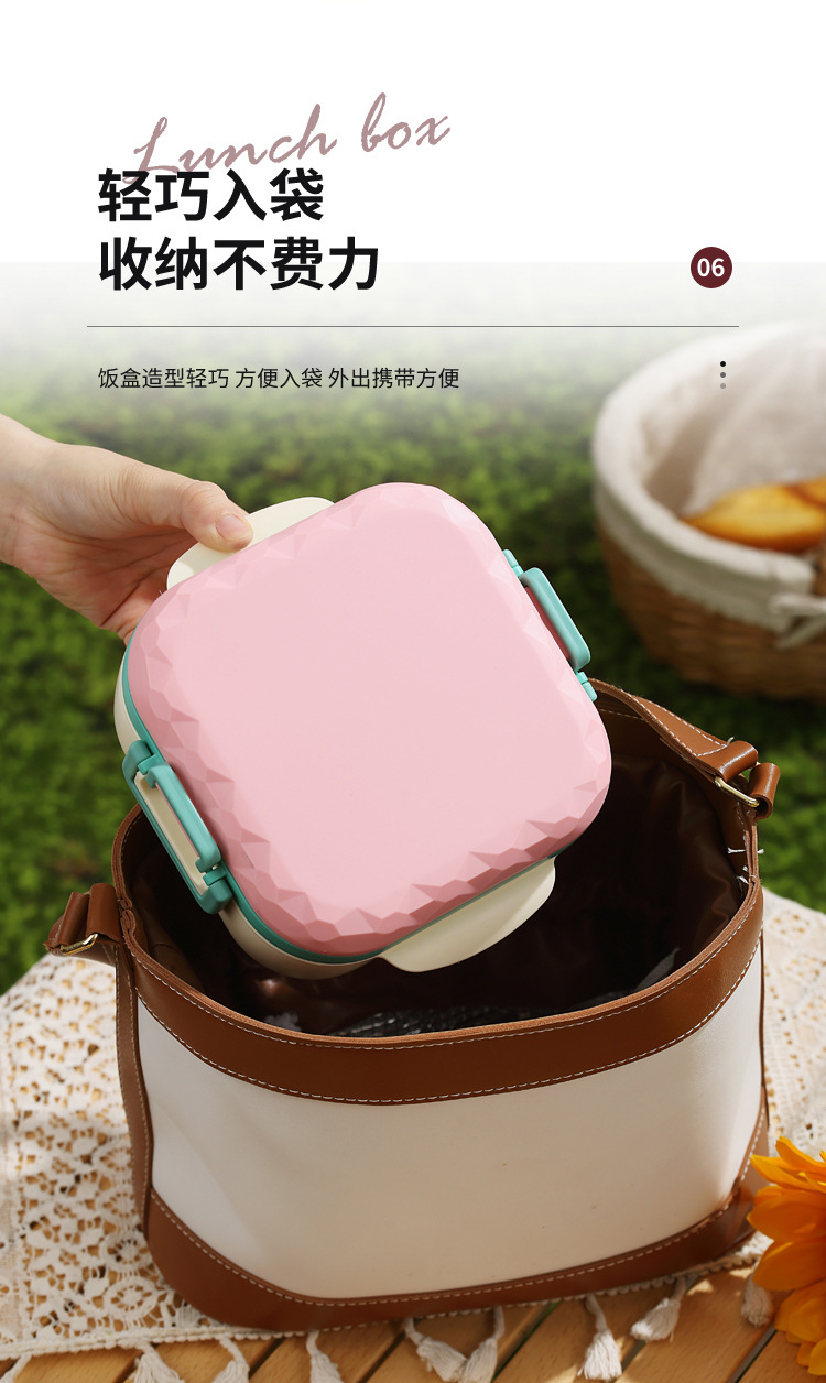 good-looking nordic ins cute portable divided lunch box single layer sealed bento lunch box student lunch box with spork
