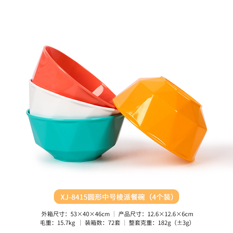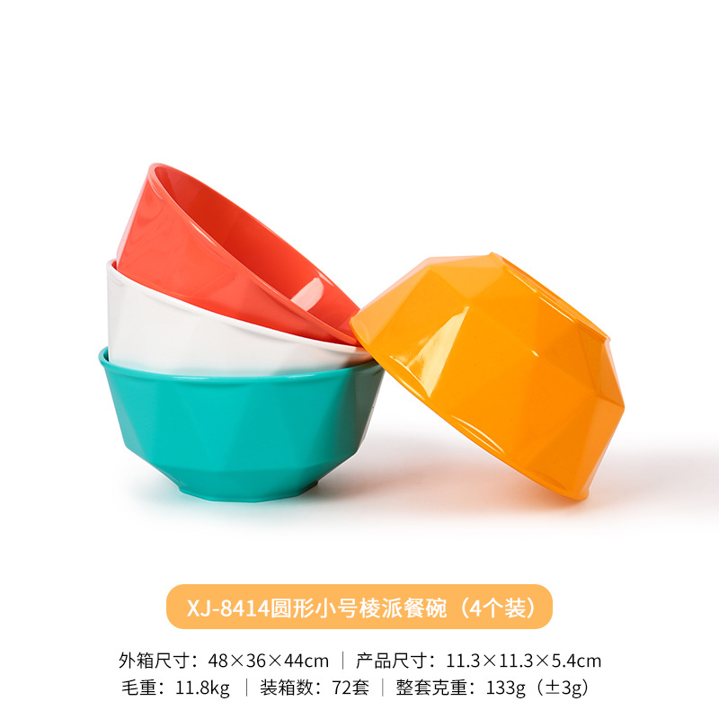 4-piece set of ribbed dining bowl cartoon household round plastic bowl set children's white plastic bowl