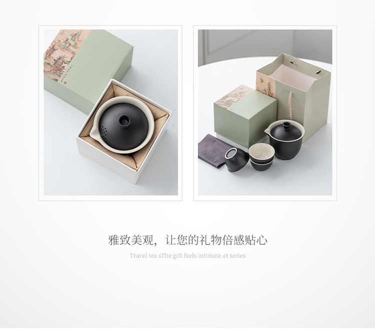 thousand-li landscape gift box/cloud crane one pot fills three cups-black