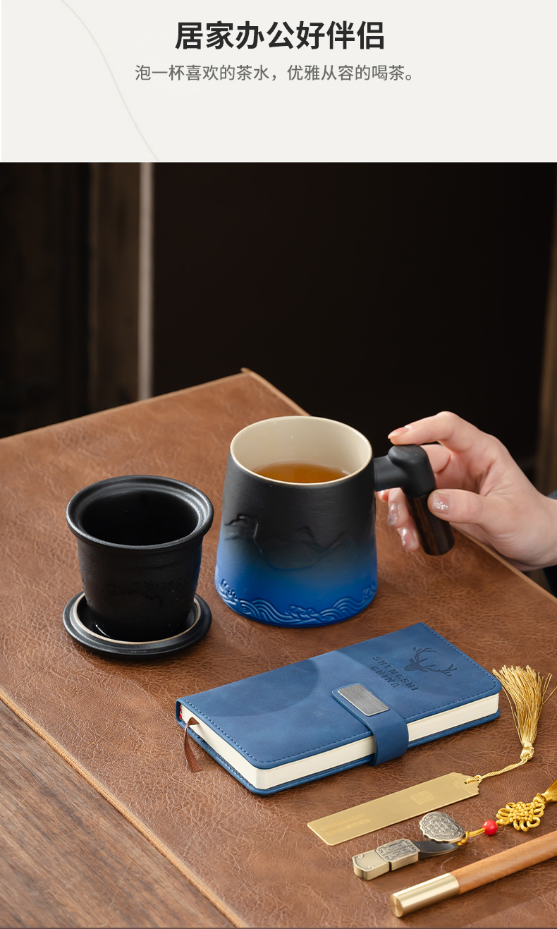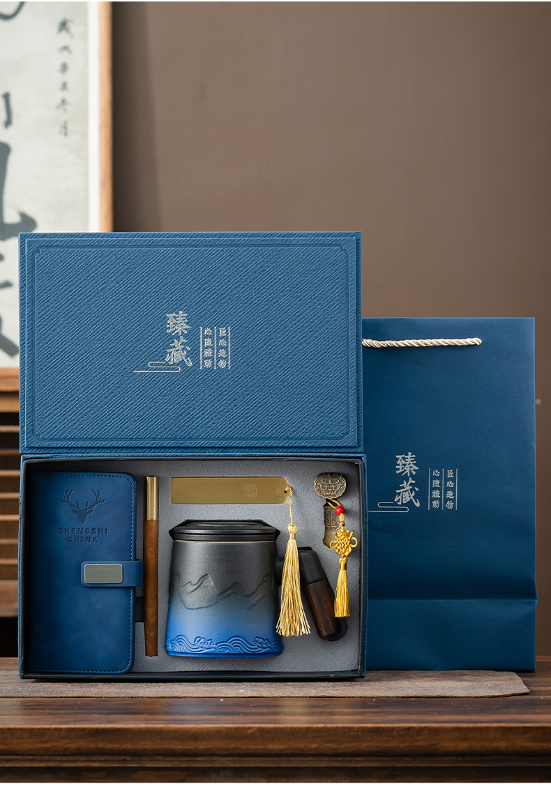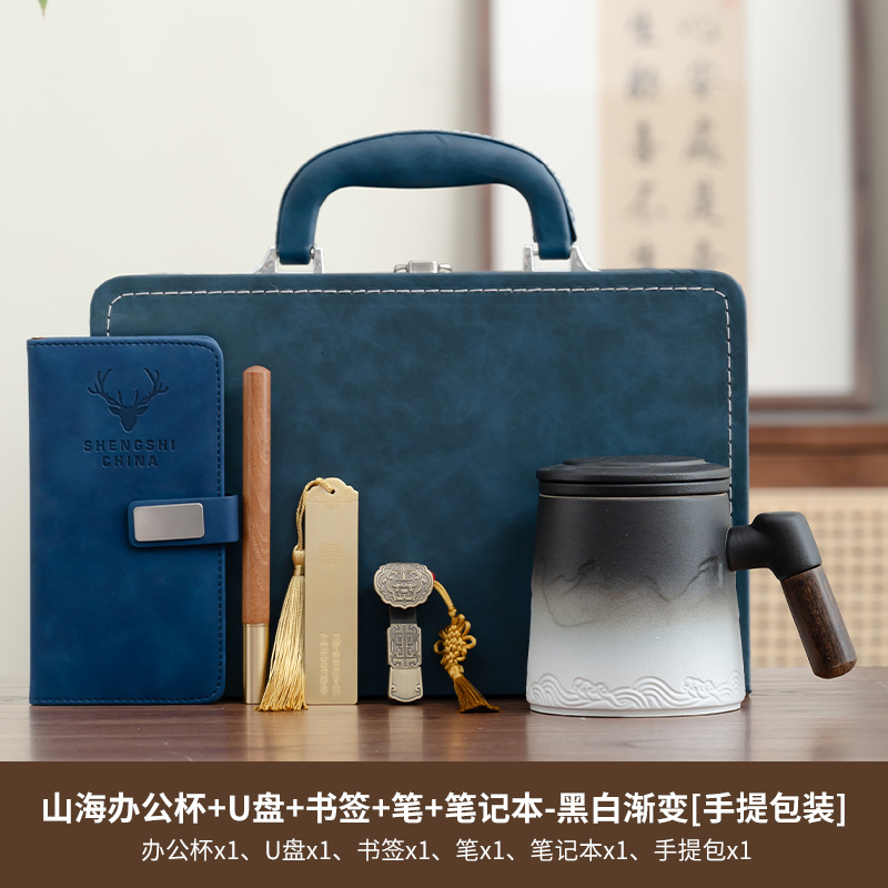black and blue/shanhai cup office five-piece set/zhen zang gift box