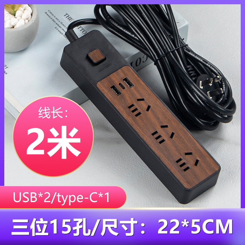 wood grain decoration 3-bit 15 perforated belt usb general control belt 1.8 m wire