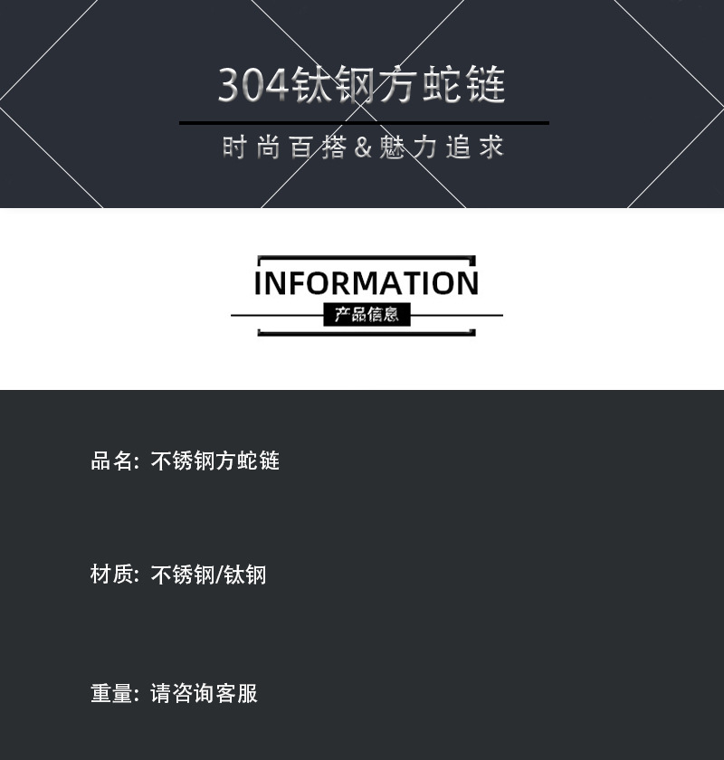 | 0.9 * 55cm long + 5cm (square snake chain) | CN¥ 2.88 | 99321 piece available |