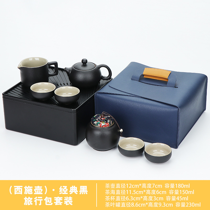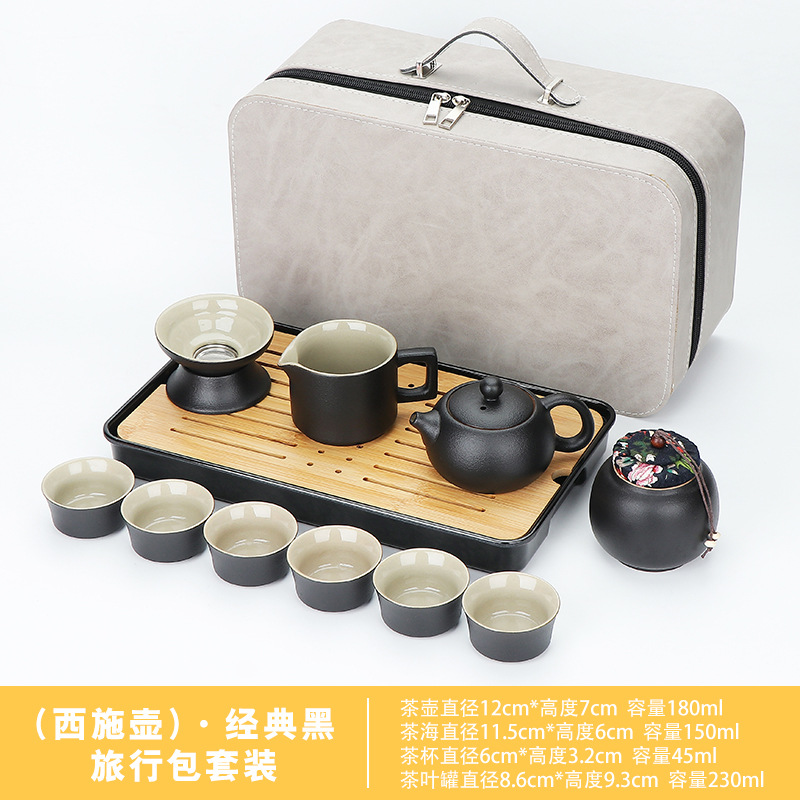 black/xi shi pot 11-head + tea tray high-end leather bag