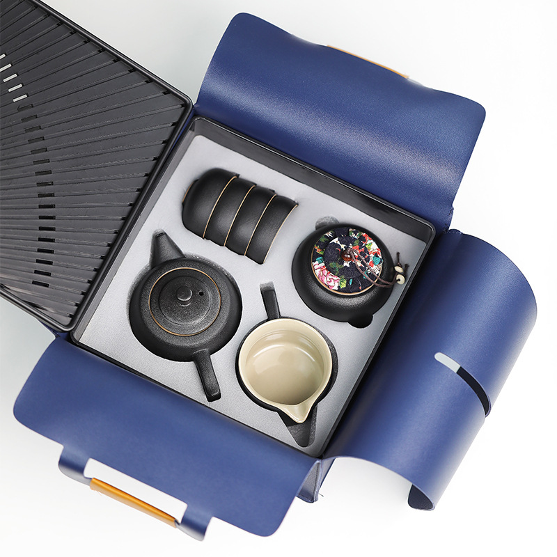 black/well blue pot 7-head tea set/travel bag