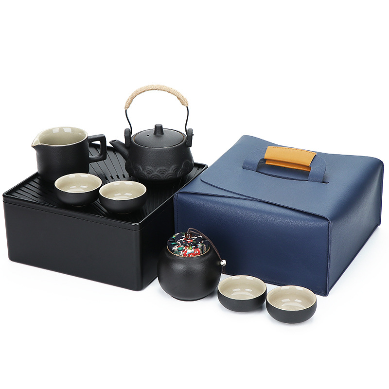 black/loop-handled teapot 7-head tea set/travel bag