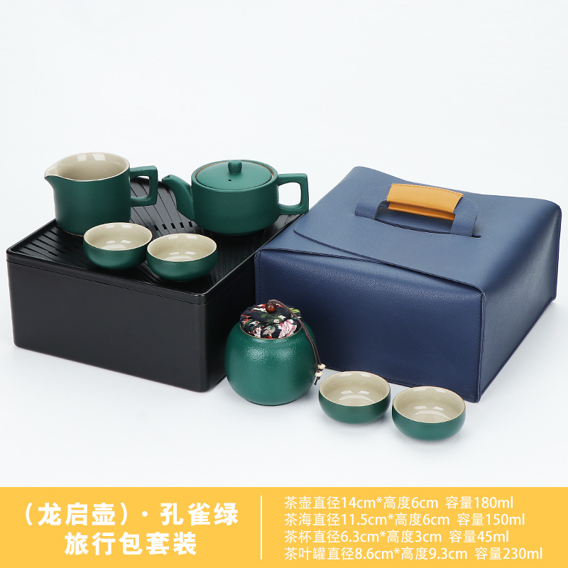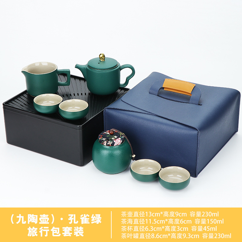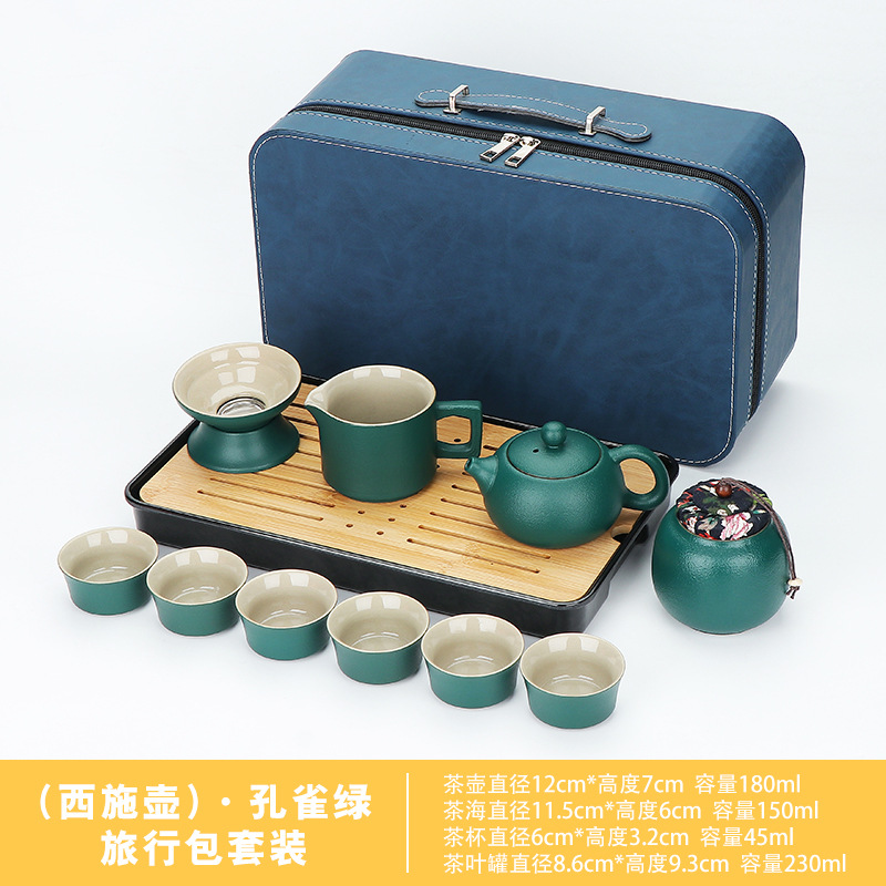 green/xi shi pot 11-head + tea tray high-end leather bag