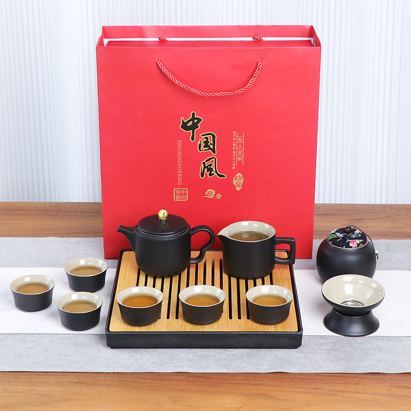 black/nine clay pot 11 heads + tea tray national style gift box