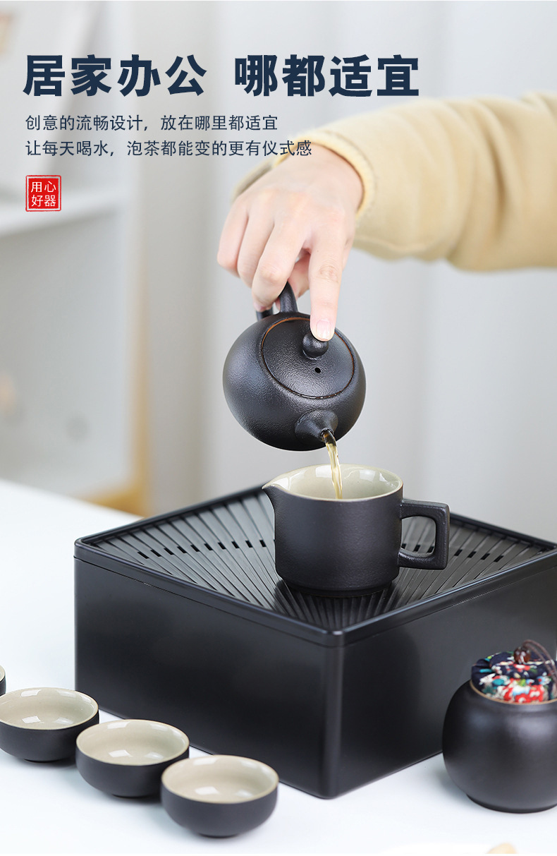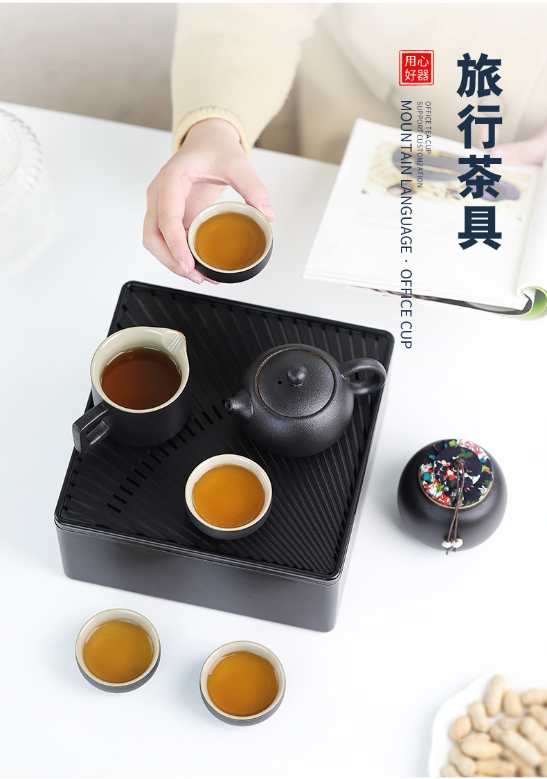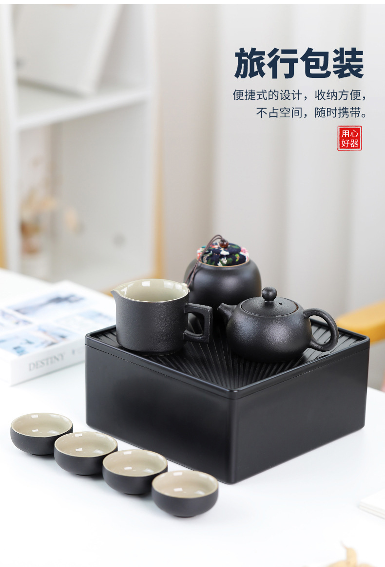 black/four-corner pot 7-head tea set/travel bag