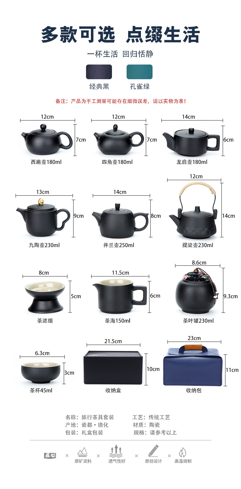 black/xi shi pot 7-head tea set/travel bag