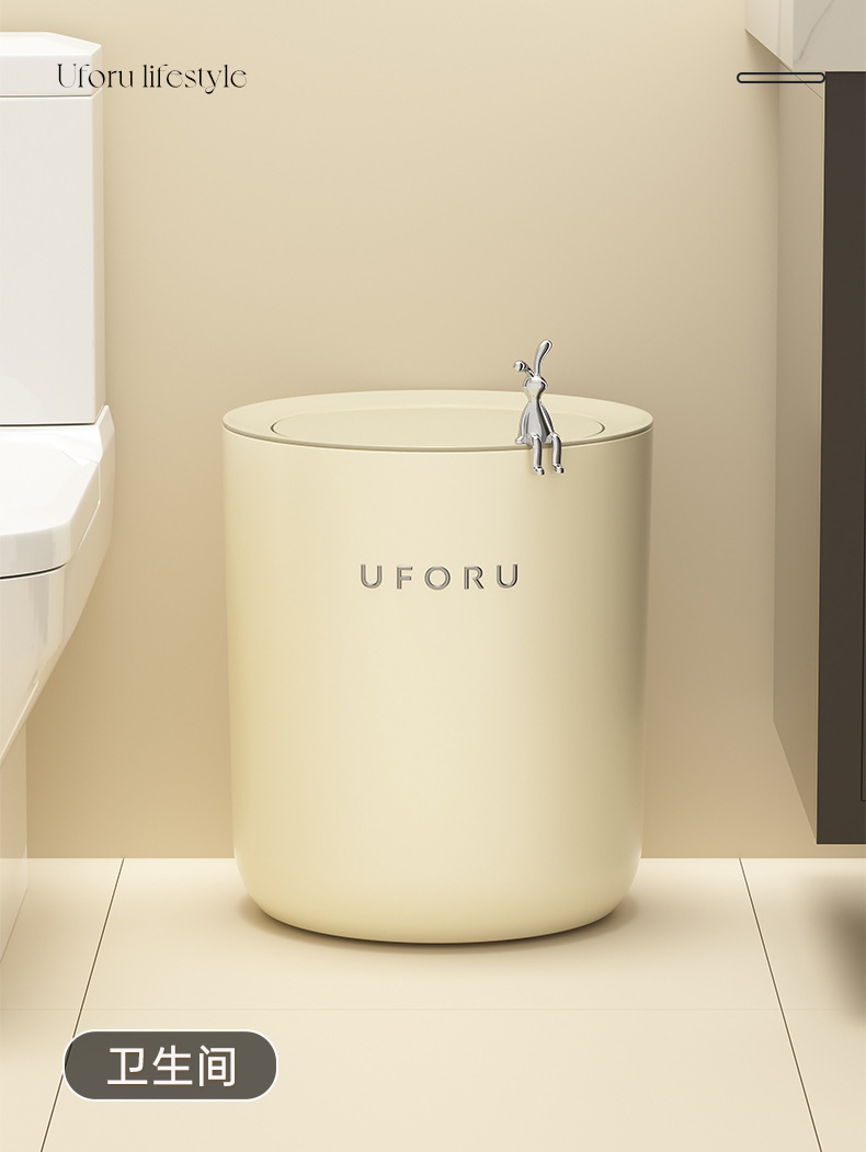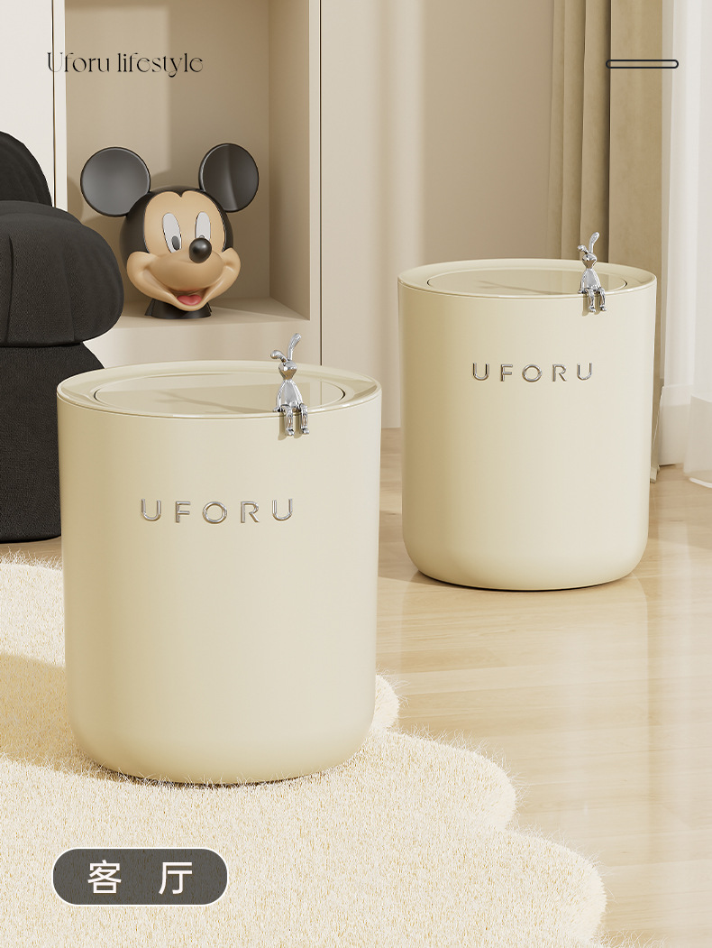 round trash can (rabbit style)-cream white