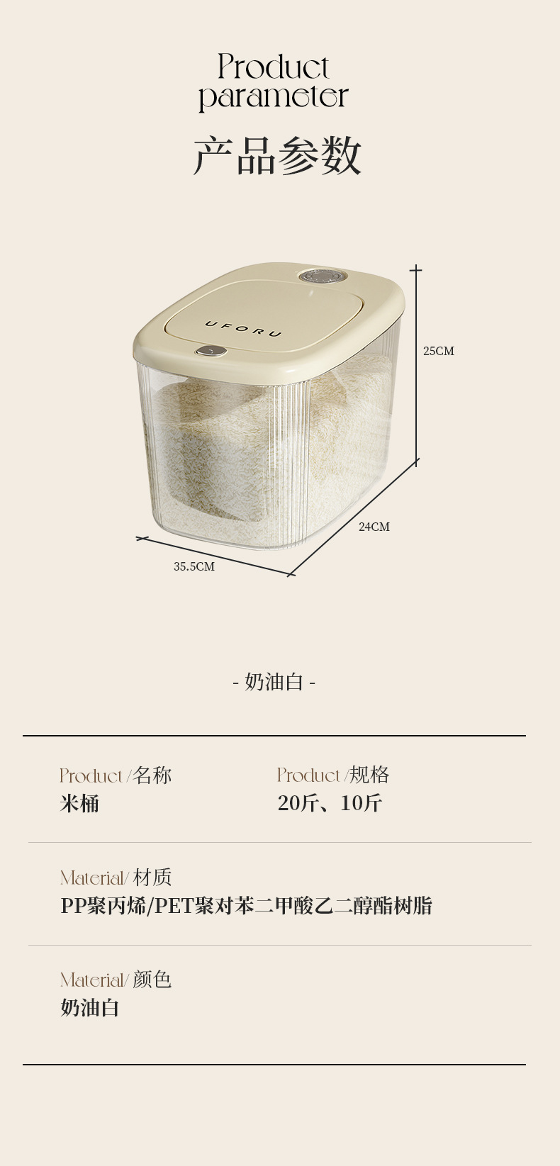 large rice bucket cream white [10.00kg]] ¥35.0 1002 piece available