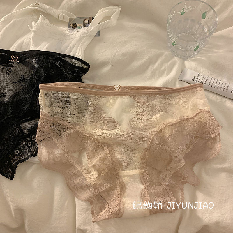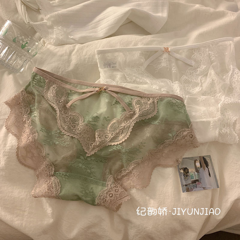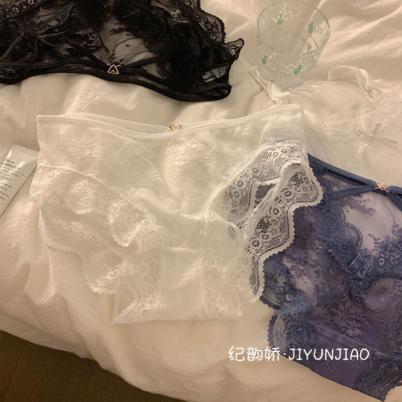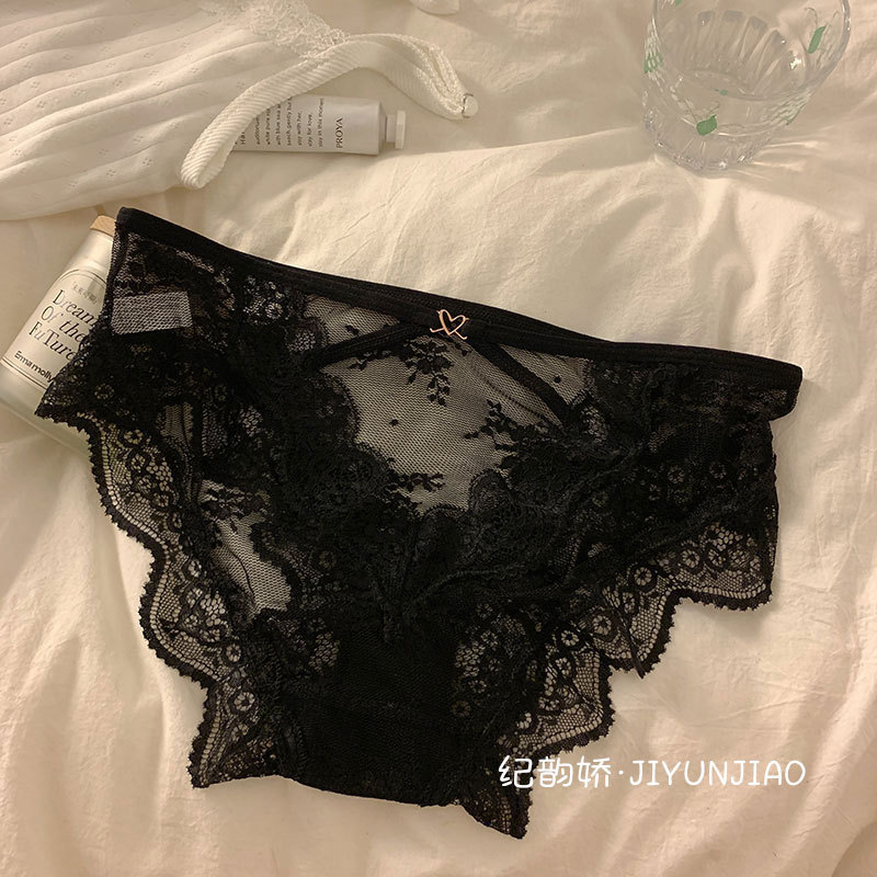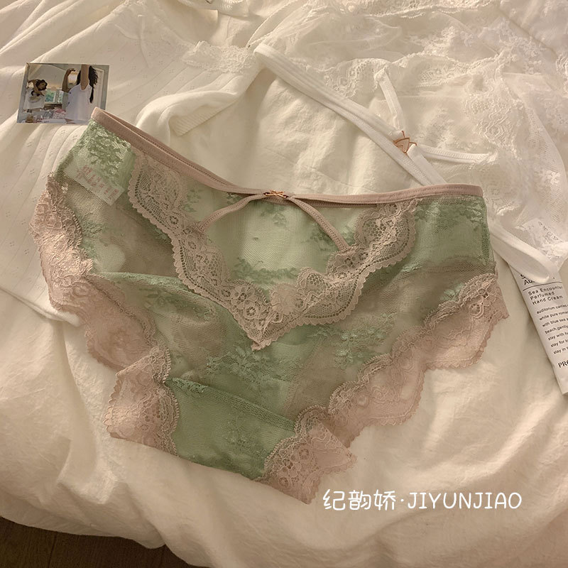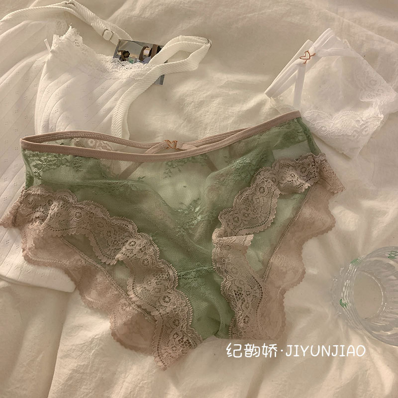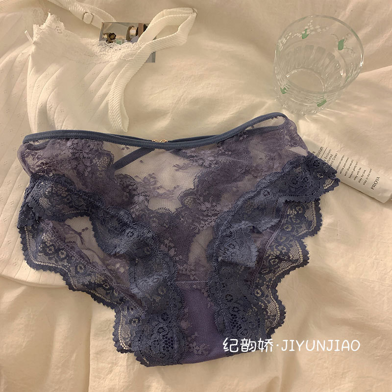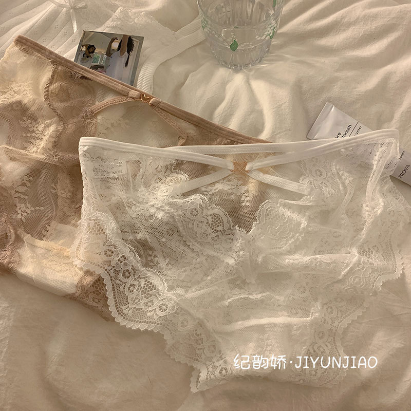 pure sexy lace cross hollow underwear ladies' mesh transparent hot light soft triangle girl underwear