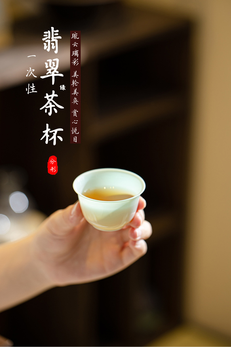 disposable emerald green kung fu tea cup high-end tea set thickened anti-scald travel portable tea cup home use and commercial use generation