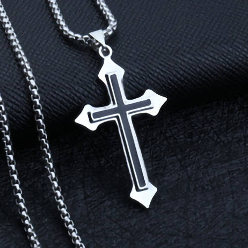 big cross + stainless steel bracelet 60cm