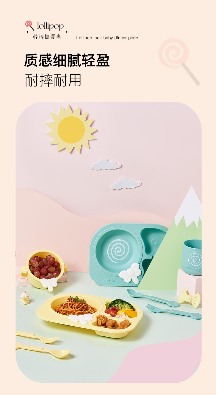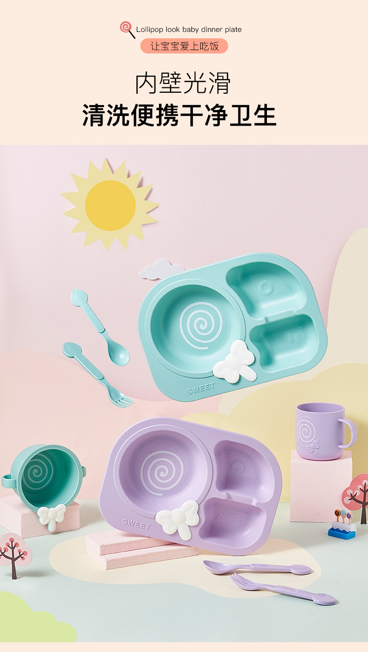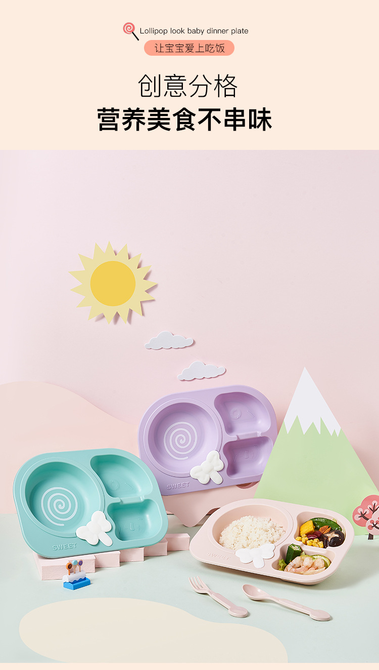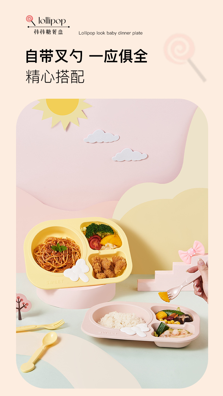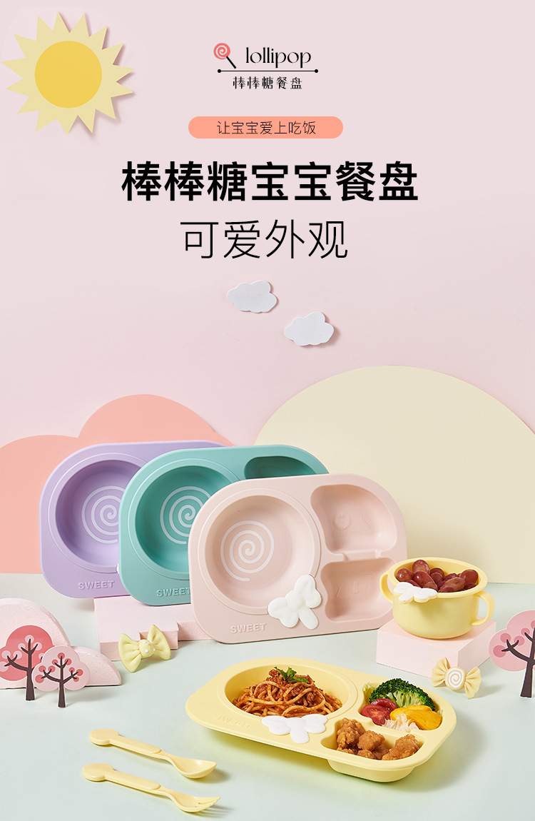 lollipop children's dinner plate round baby plate children's tableware compartment food grade household drop-resistant plate eating bowl