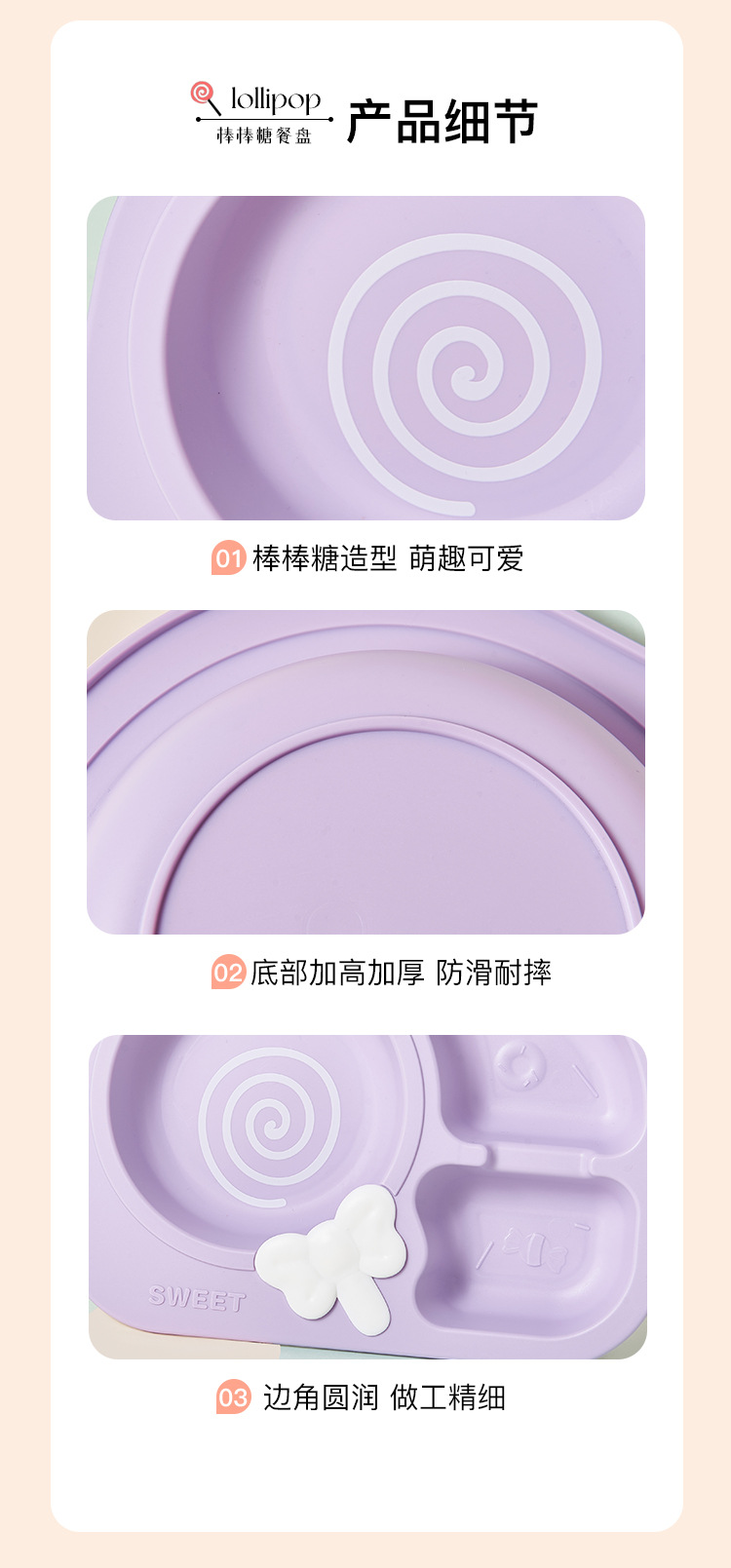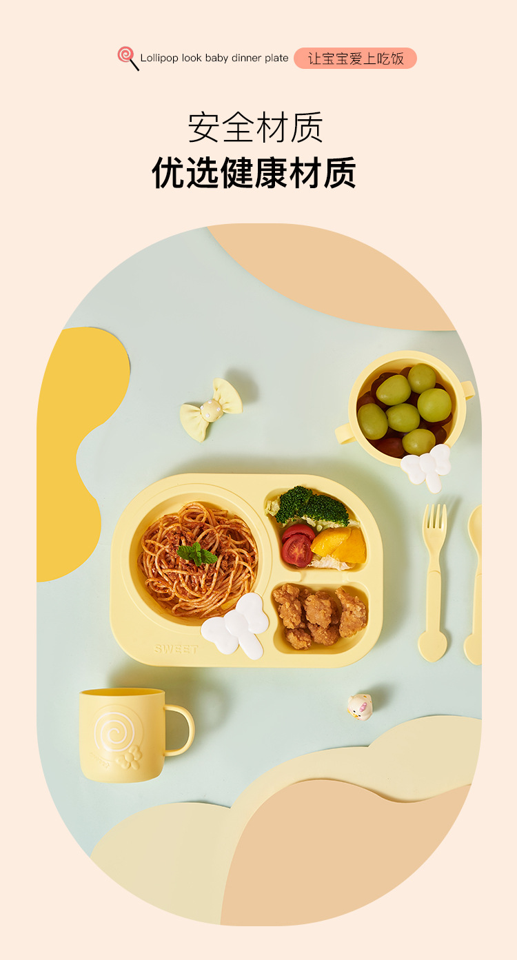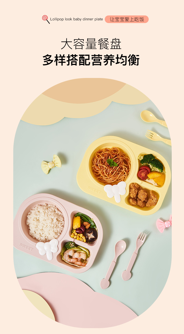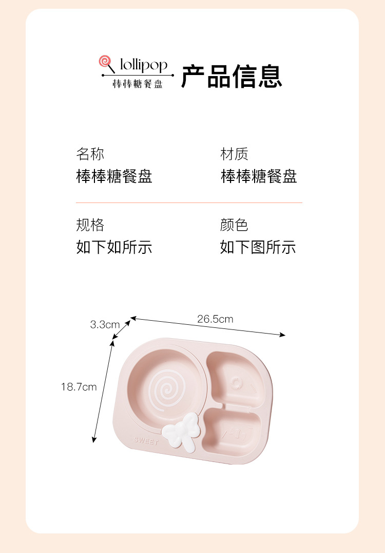 lollipop children's dinner plate round baby plate children's tableware compartment food grade household drop-resistant plate eating bowl