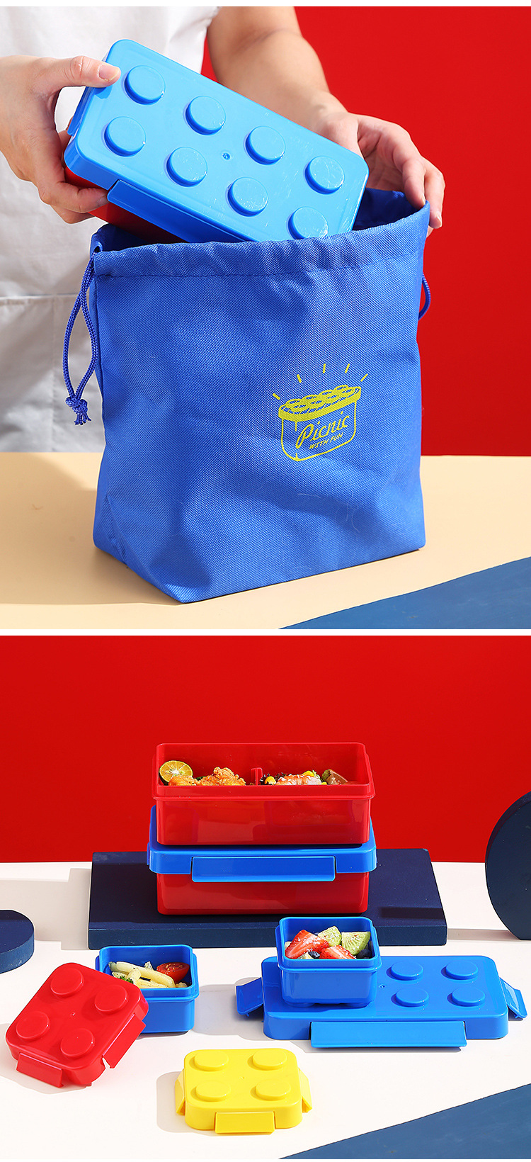 cross-border creative can be splicing blocks bento box set children student portable microwaveable leak-proof divided lunch box