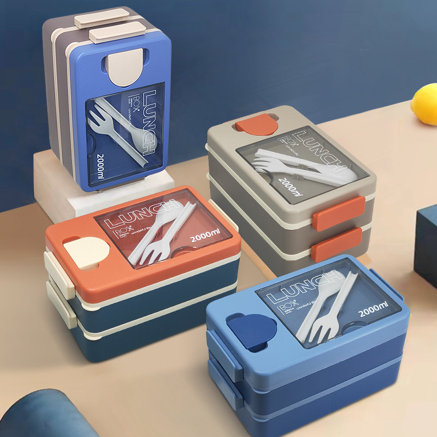 new divided lunch box student good-looking sealed bento box microwave oven office worker with tableware double layer lunch box