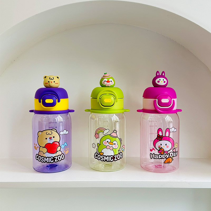 new cartoon doll straw bounce cover plastic pc drinking cup