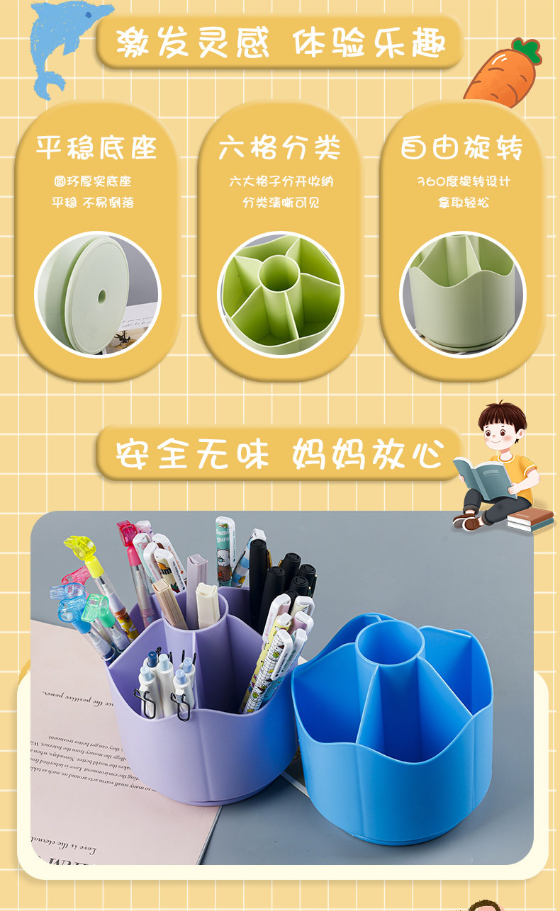 large capacity 360 degree rotating pen holder cute creative primary school student desktop stationery storage box multifunctional pen case