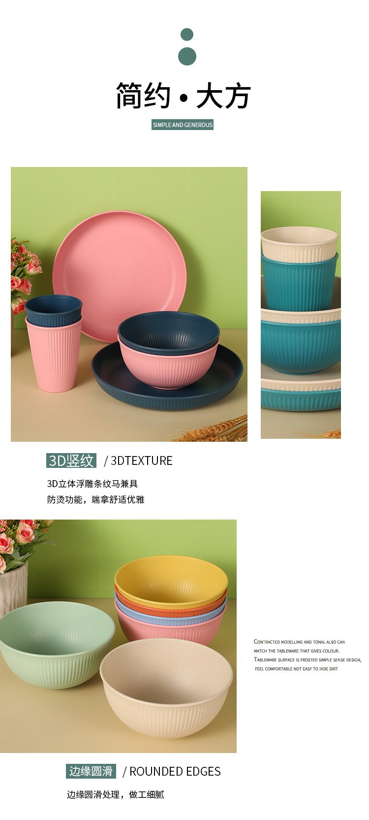 vertical pattern 15 bowls (4 box kit) beige pink light blue light green