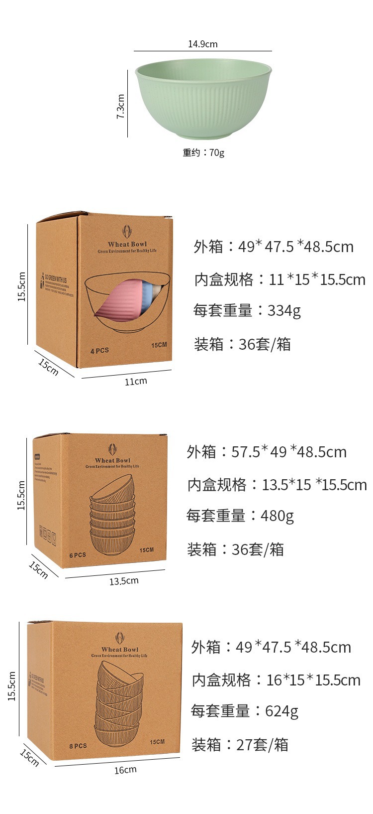 vertical pattern 15 bowls (8 box kit) 8 colors