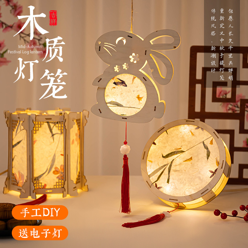 mid-autumn festival new lantern light-emitting portable children's activity props handmade material kit diy wooden lantern