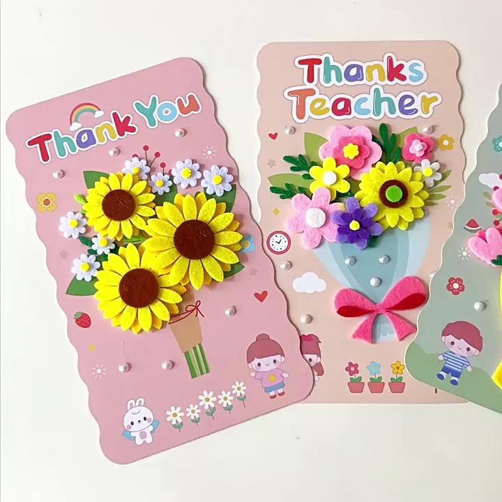 Teacher's Day Greeting Card Stereoscopic Card Children's DIY Handmade Preserved Fresh Flower Greeting Card Kindergarten Thanksgiving Gift for Teachers