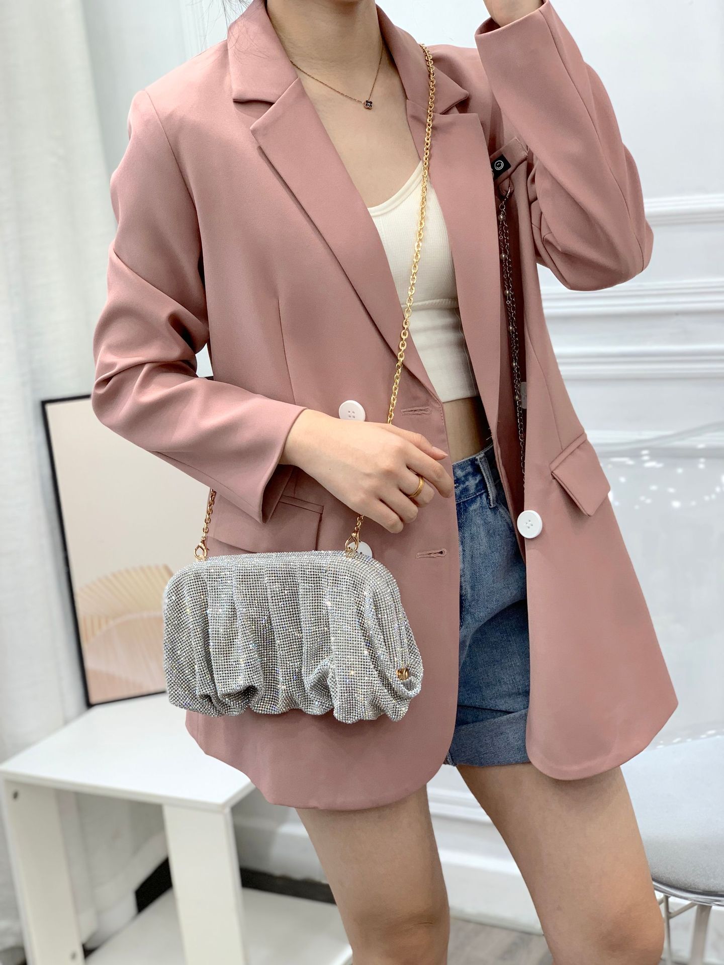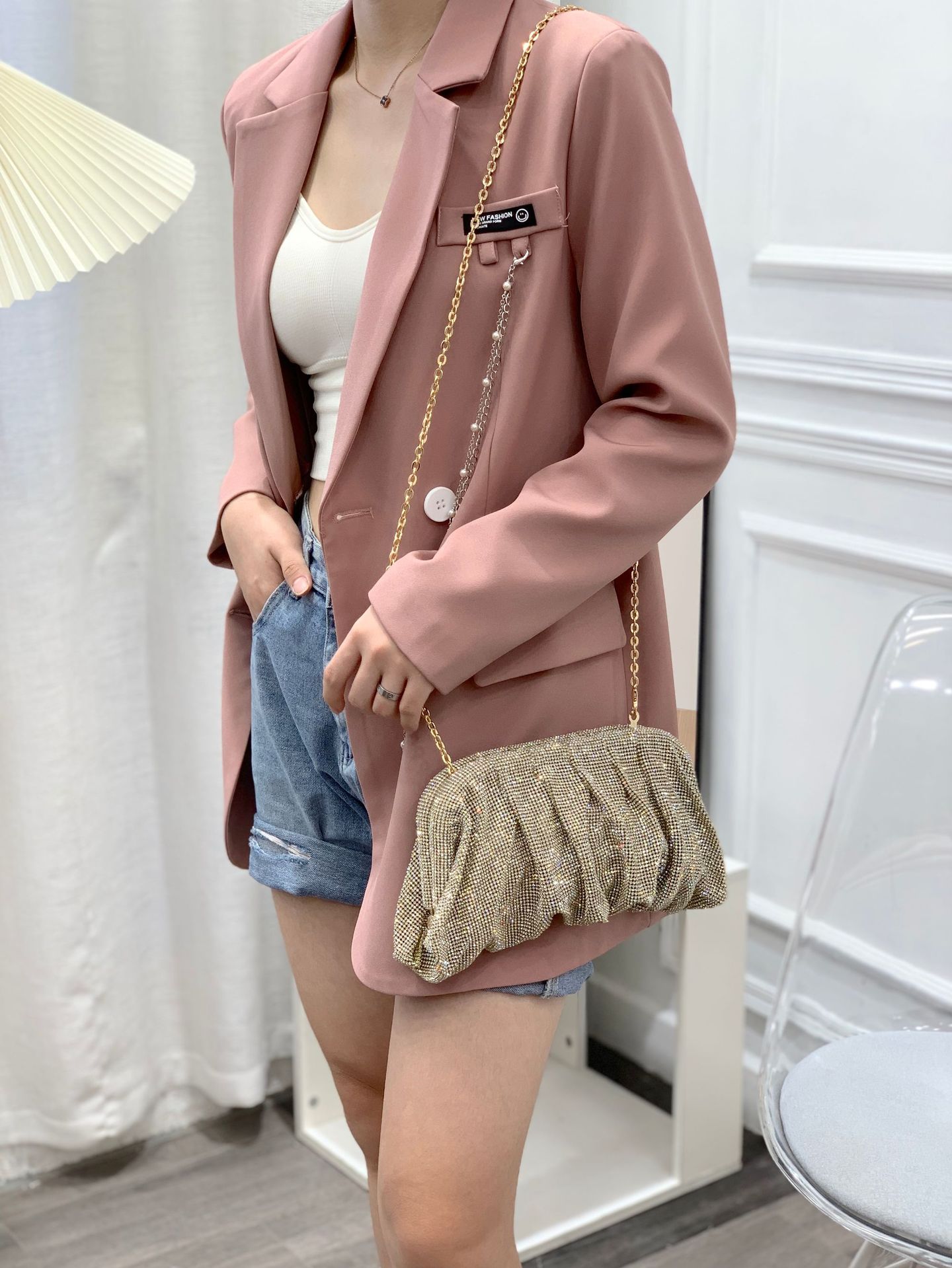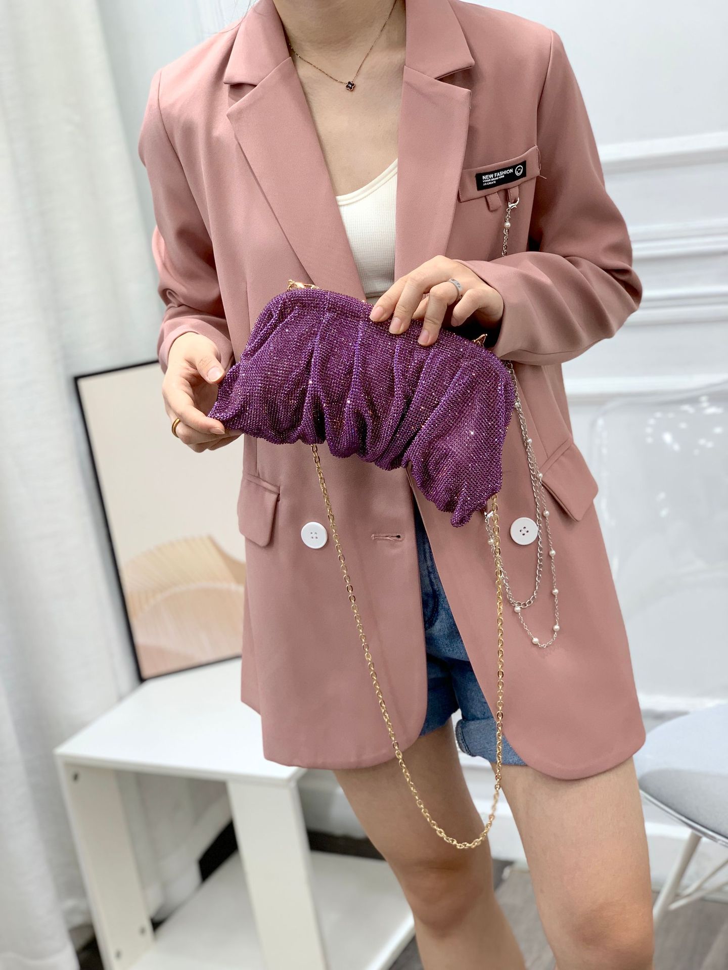 Customized Bag Cross-Border Women's Bag Shoulder Crossbody Exquisite High Sense Hand Holding Dinner Bag Cloud Bag