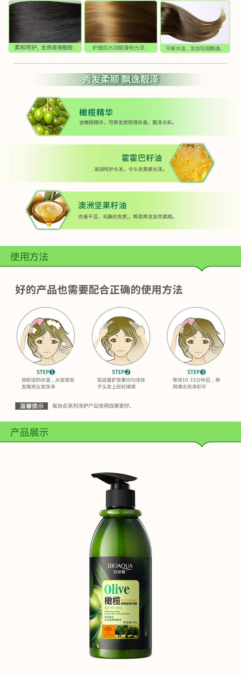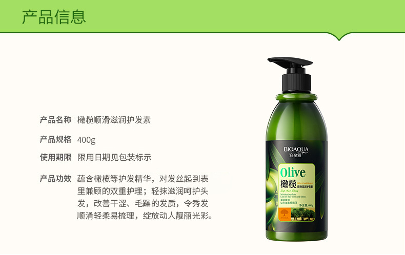 Bioaqua Olive Mild and Smooth Shampoo Shower Gel Hair Conditioner Hair Care Refreshing Oil Controlling, Hydrating, and Moisturizing