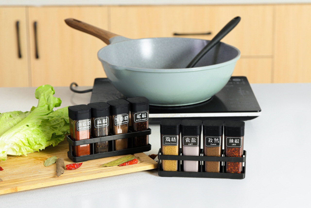transparent seasoning bottle 2 sets (8 bottles +2 bases)
