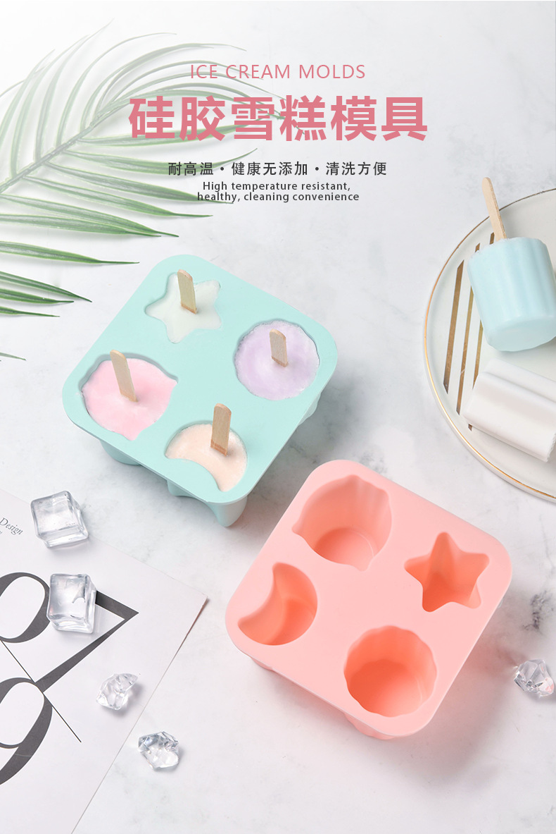 summer 4 holes with lid ice-cream mould food grade diy homemade ice creams and sorbets ice sucker ice cube popsicle mold