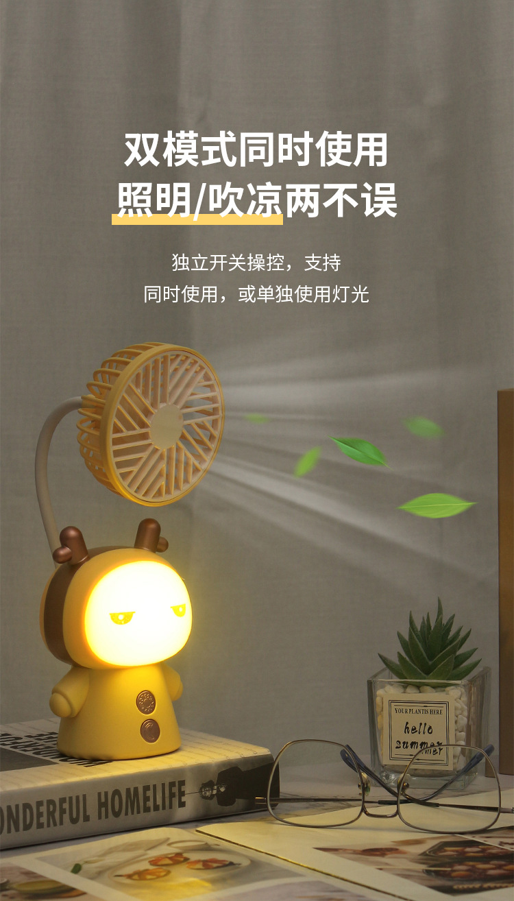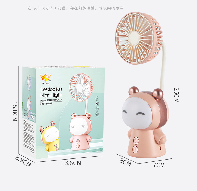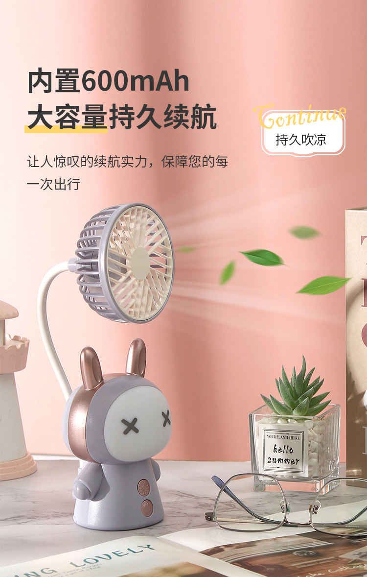 new adorable rabbit night light fan desktop desktop bedroom office student dormitory usb rechargeable fan
