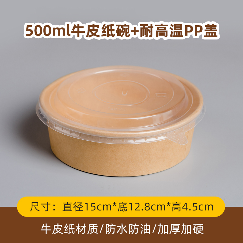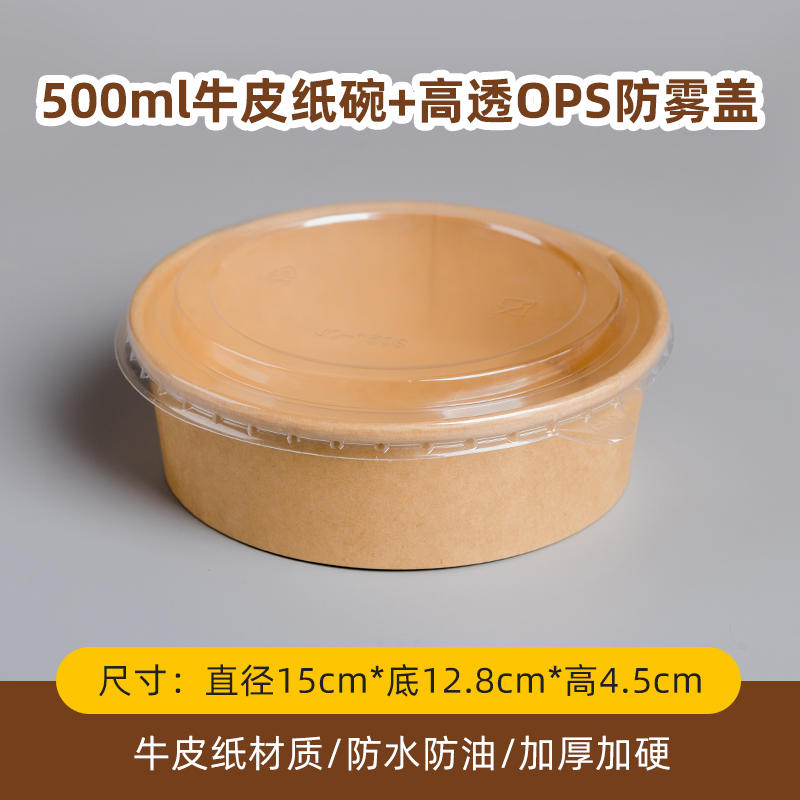 500 ml kraft paper bowl + transparency cover 600 sets