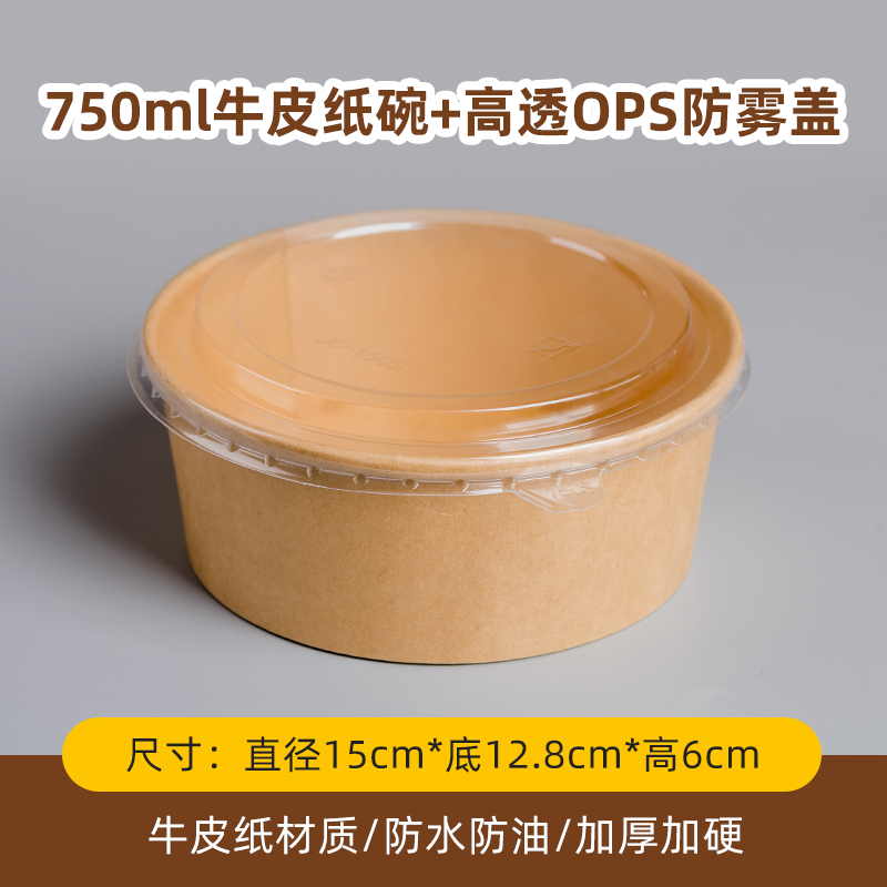 750 ml kraft paper bowl + transparency cover 600 sets