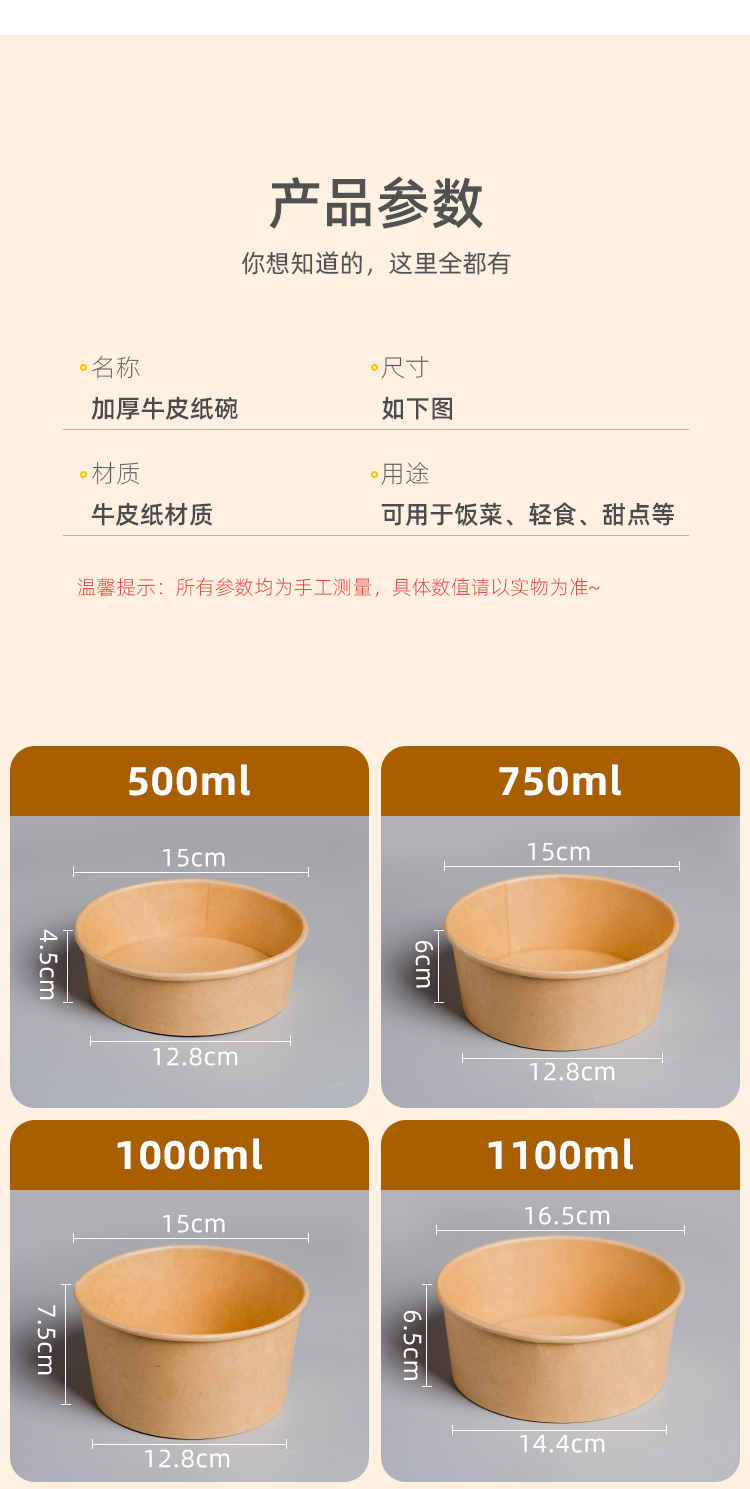 1100 thicken kraft paper bowls 300 without lid