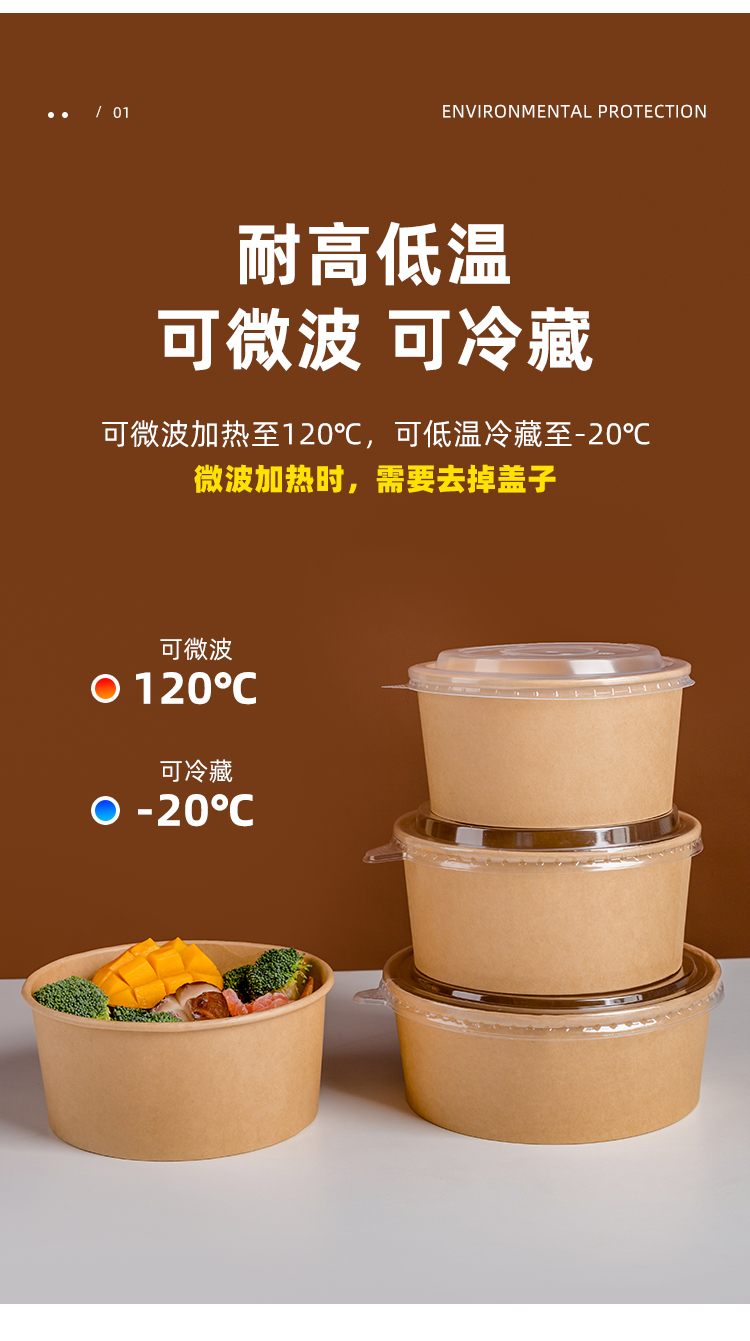 1100 ml kraft paper bowl + transparency cover 600 sets