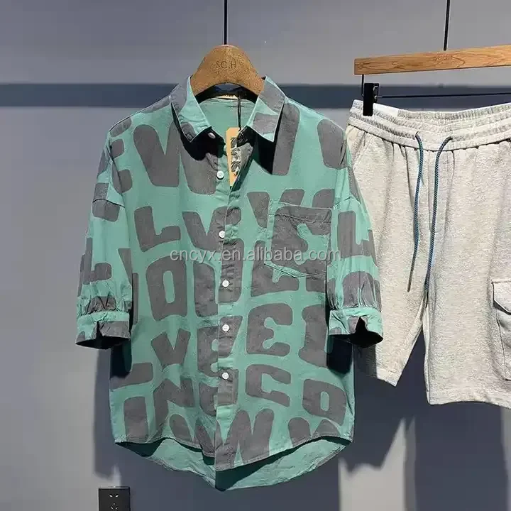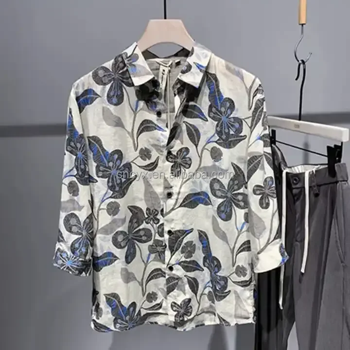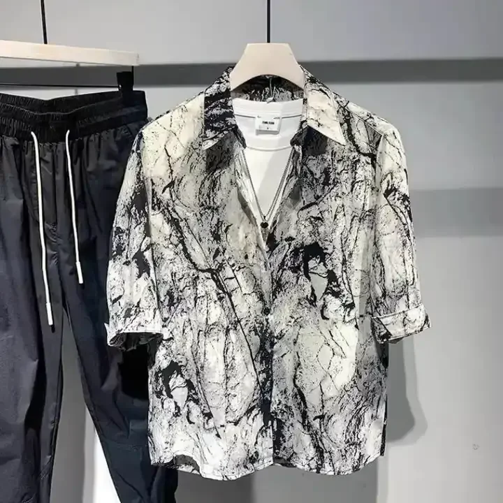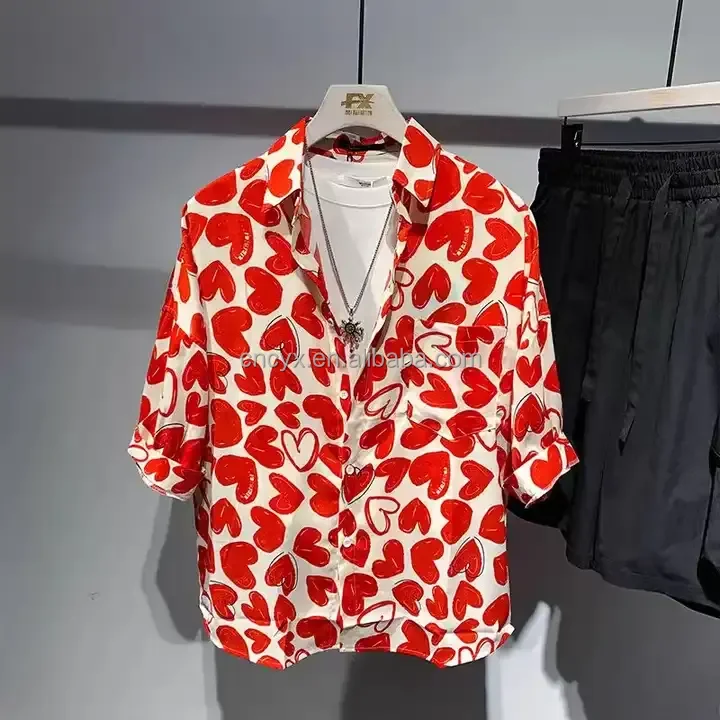 2024 Lasted Digital Printed Men's Collar T Shirts Rayon Viscose High Fashion Quality Vintage Short Sleeve Printed Shirts For Men