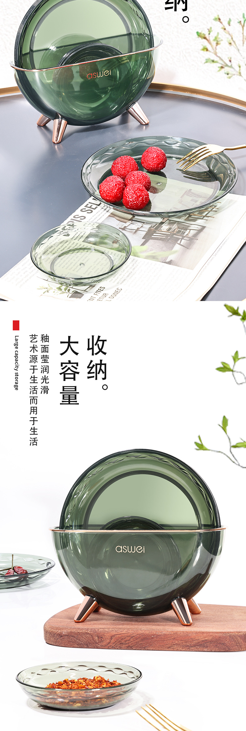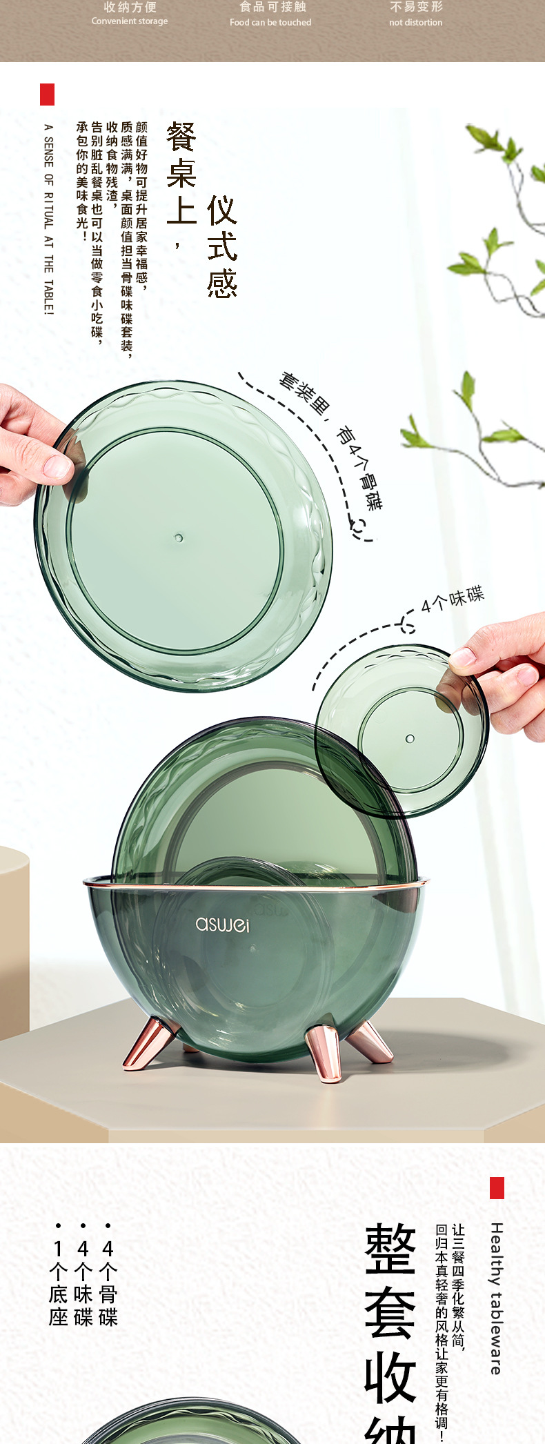 a122wgd sauce dish bone dish suit dark green