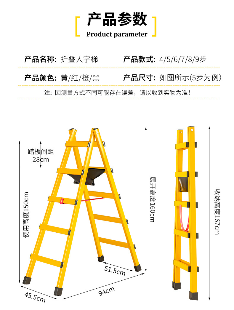 thickened carbon steel walking trestle ladder cute orange five steps