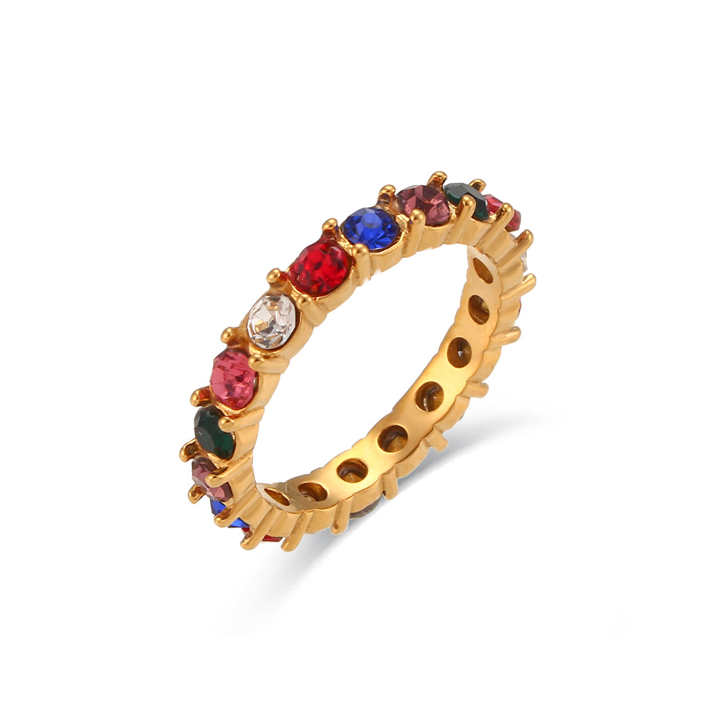 micro inlaid zircon thin ring-colorful crystals light color-no. 7