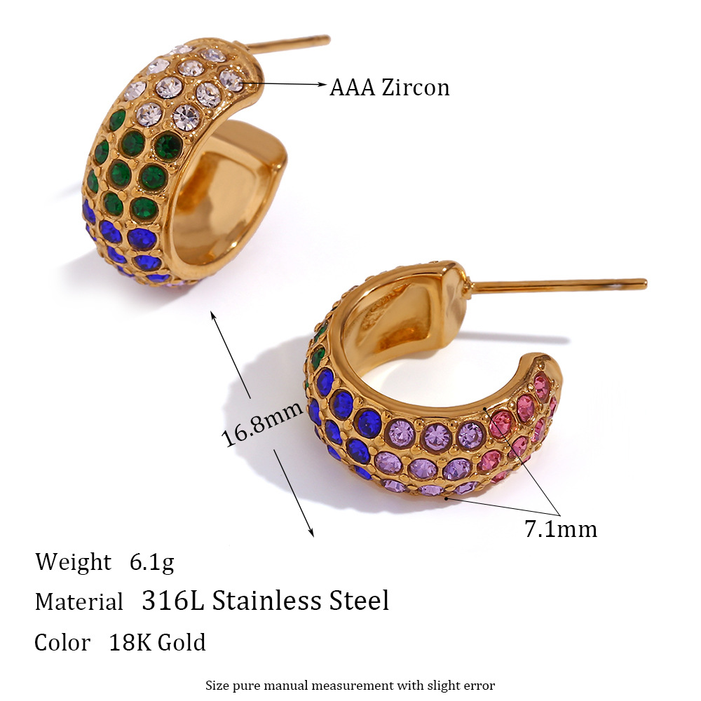 full diamond c- shaped bread small ear ring-golden-colorful crystals