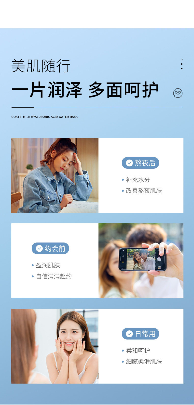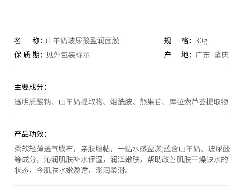 fanzhen goat's milk hyaluronic acid moisturizing mask moisturizing delicate moisturizing discoloration improvement moisturizing facial mask