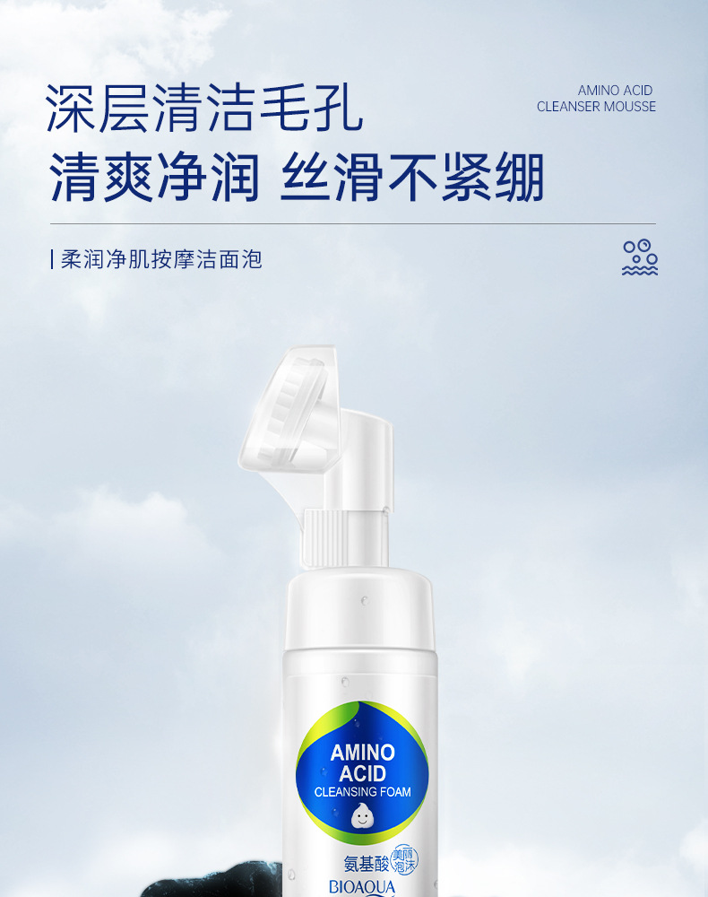 Bioaqua Soft Moisturizing Massage Cleansing Foam Facial Cleanser Facial Cleanser Mousse Hydrating Pore Removing Facial Brush